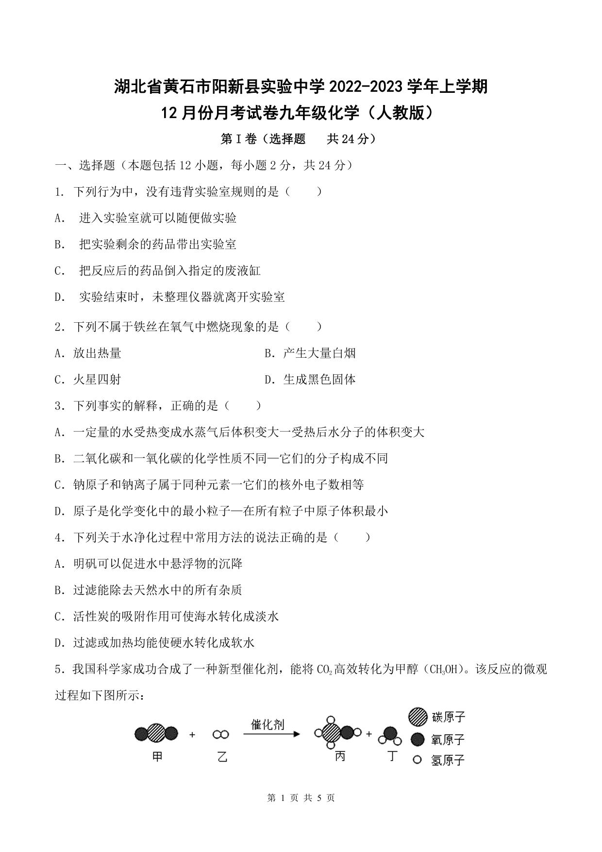 湖北省黄石市阳新县实验中学2022-2023学年上学期12月份月考试卷九年级化学(人教版)
