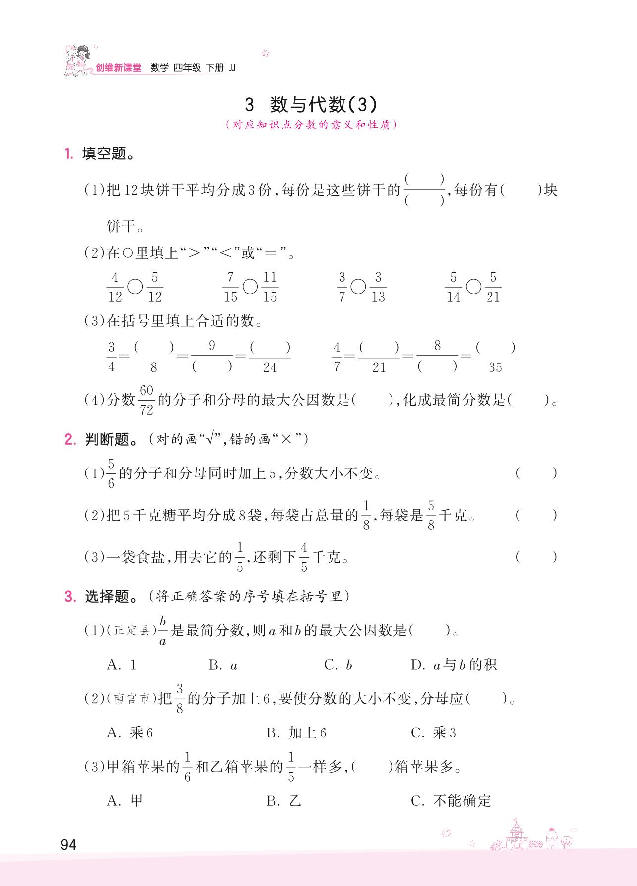 2022下册四年级数学冀教版 整理与评价——3 数与代数(3)