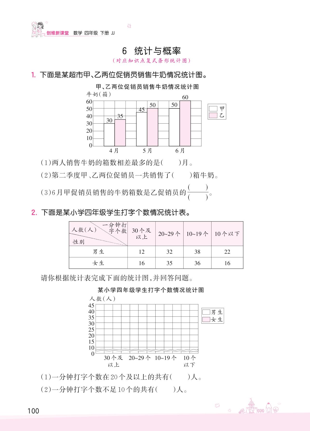 2022下册四年级数学冀教版 整理与评价——6 统计与概率