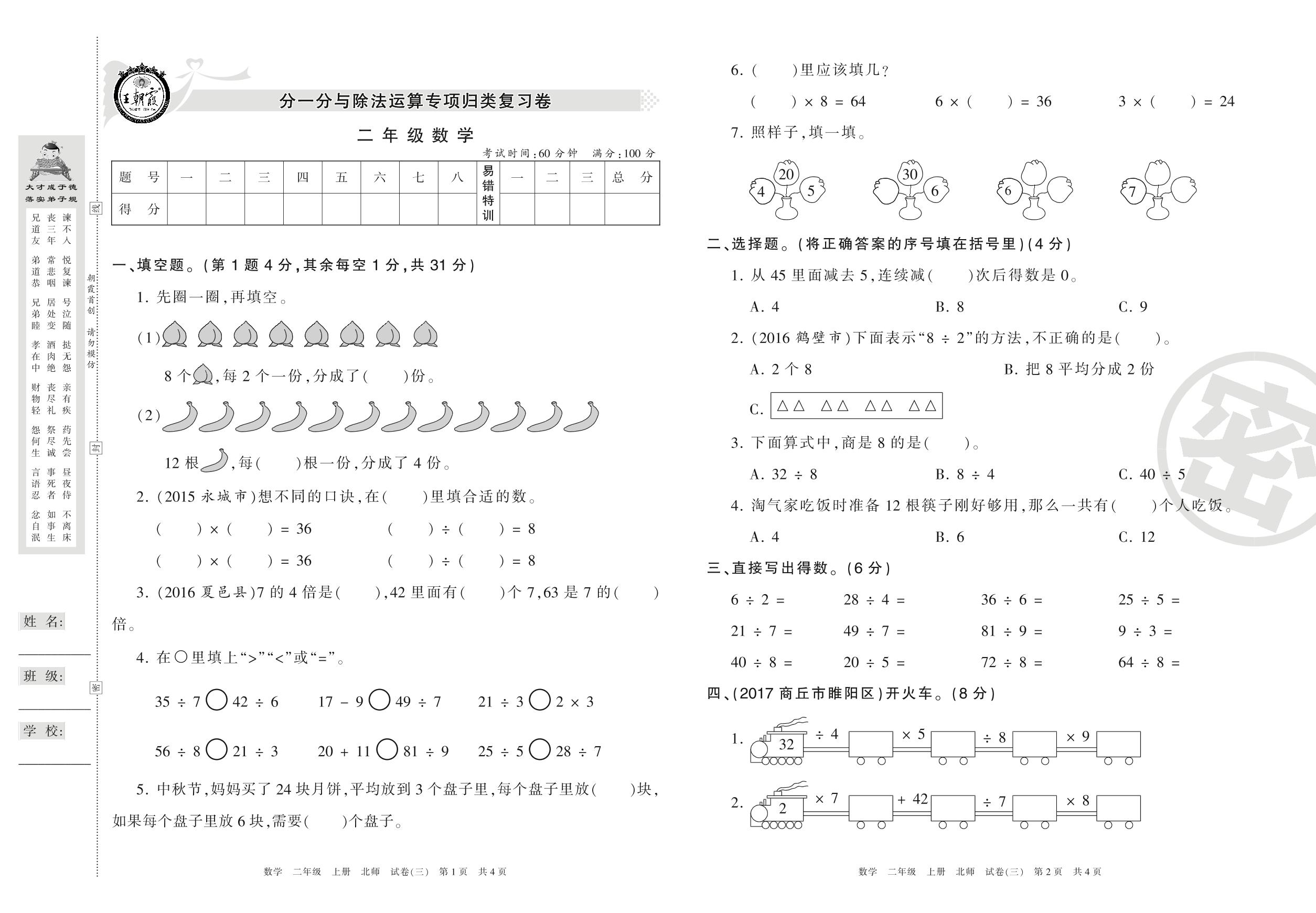 王朝霞期末专项卷二年级上册数学(北师版)_R210803102346【3】
