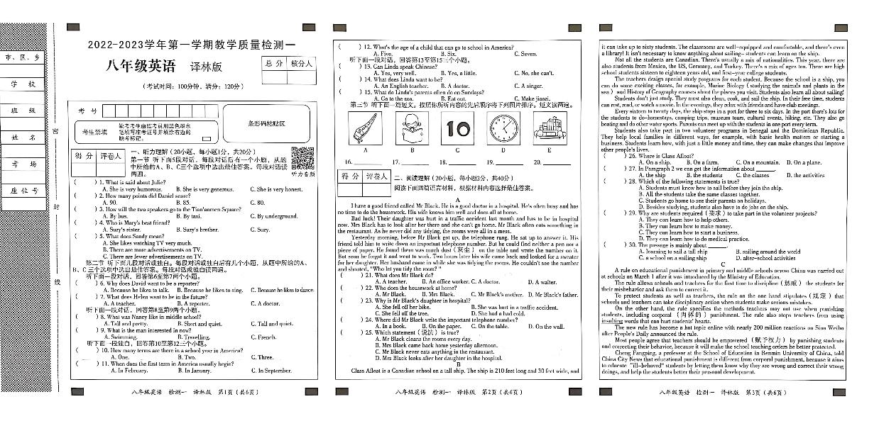 河南省周口市淮阳区冯塘乡第三中学2022-2023学年第一学期教学质量检测一11月月考八年级英语(译林版)【无听力音频】