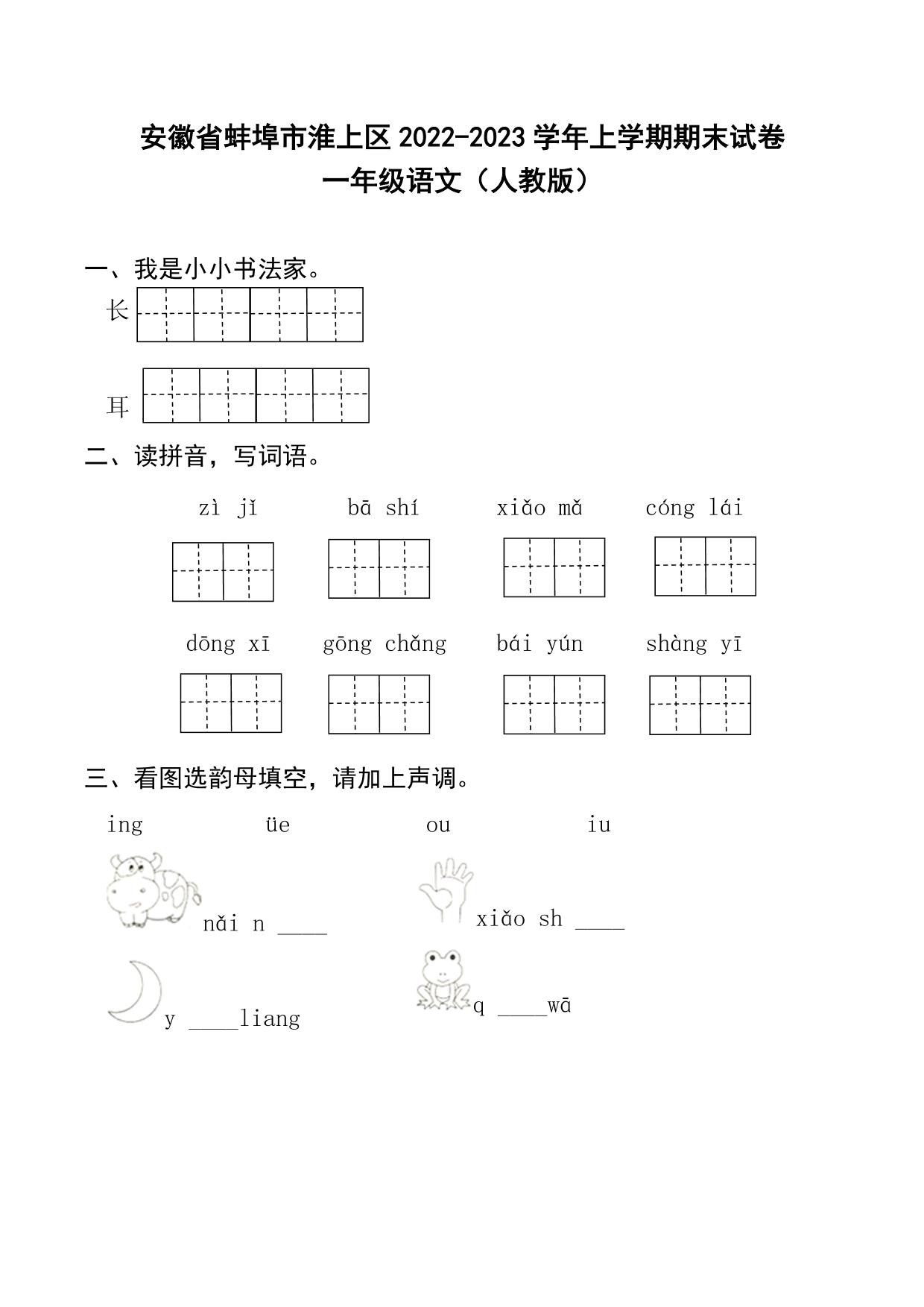 安徽省蚌埠市淮上区2022-2023学年上学期期末试卷一年级语文(人教版)
