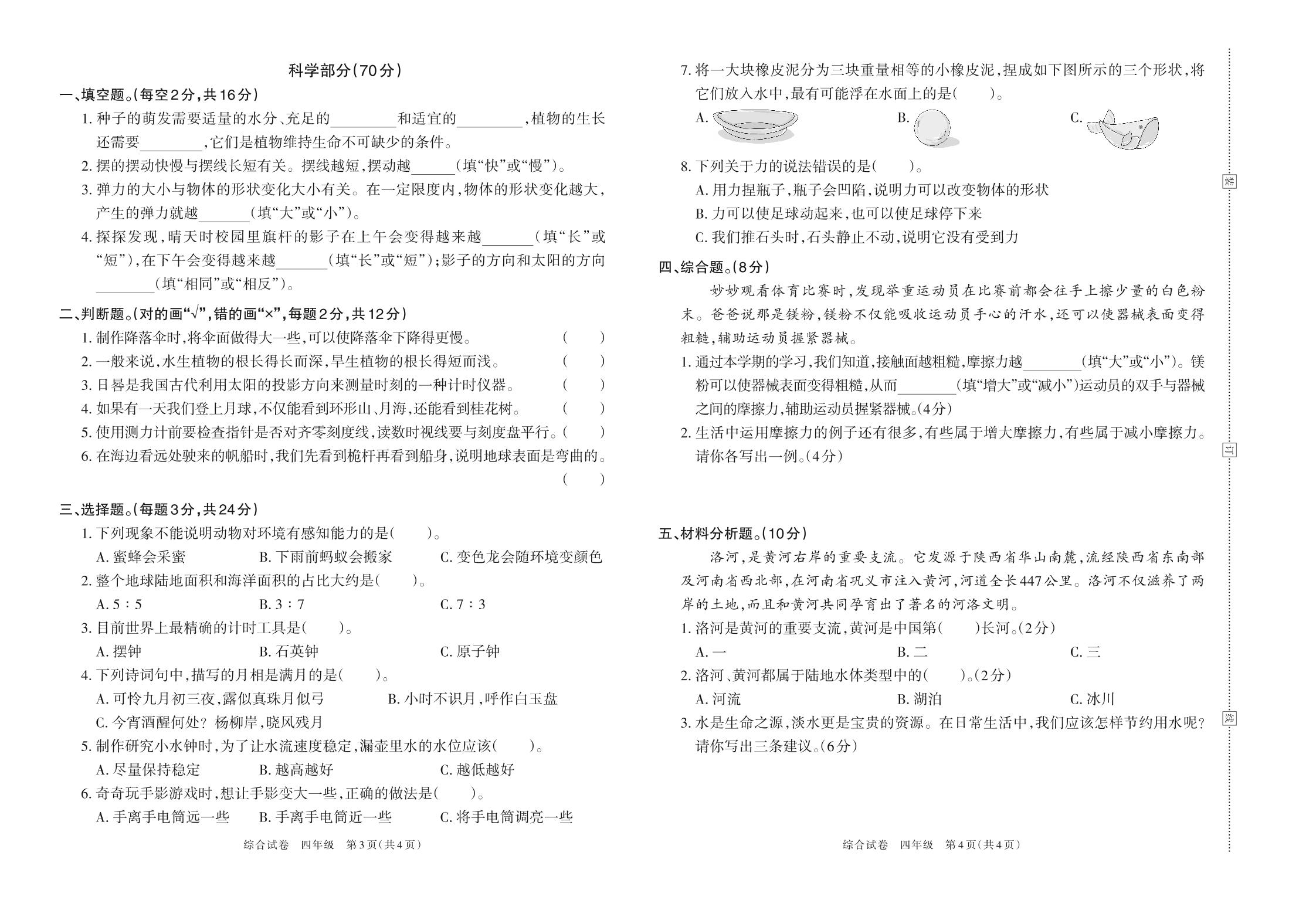 河南省洛阳市洛宁县2022—2023学年下学期期末质量检测综合试卷四年级科学(大象版)
