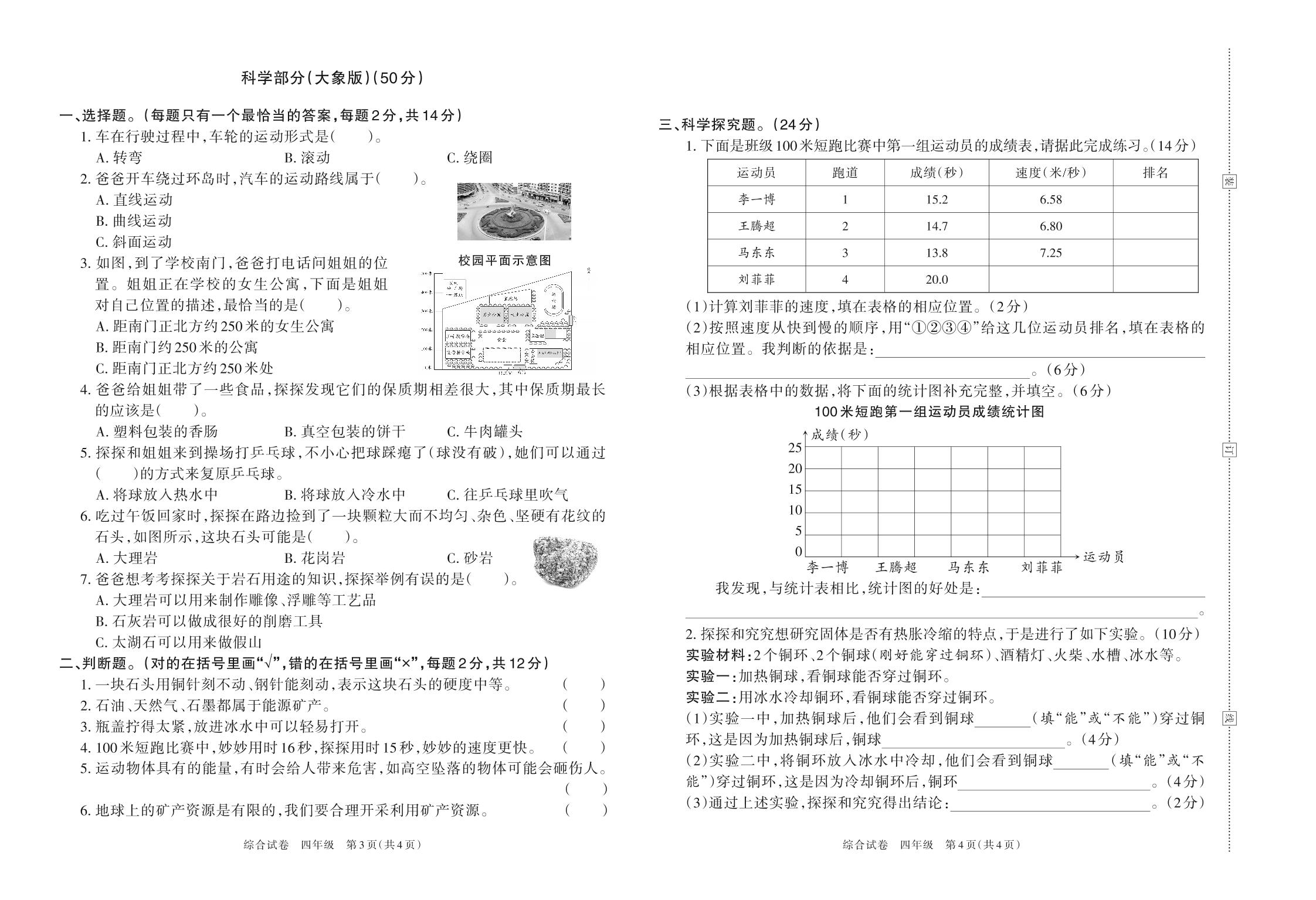 河南省安阳市汤阴县任固中心小学2022—2023学年上学期期中学情诊断四年级科学(大象版)