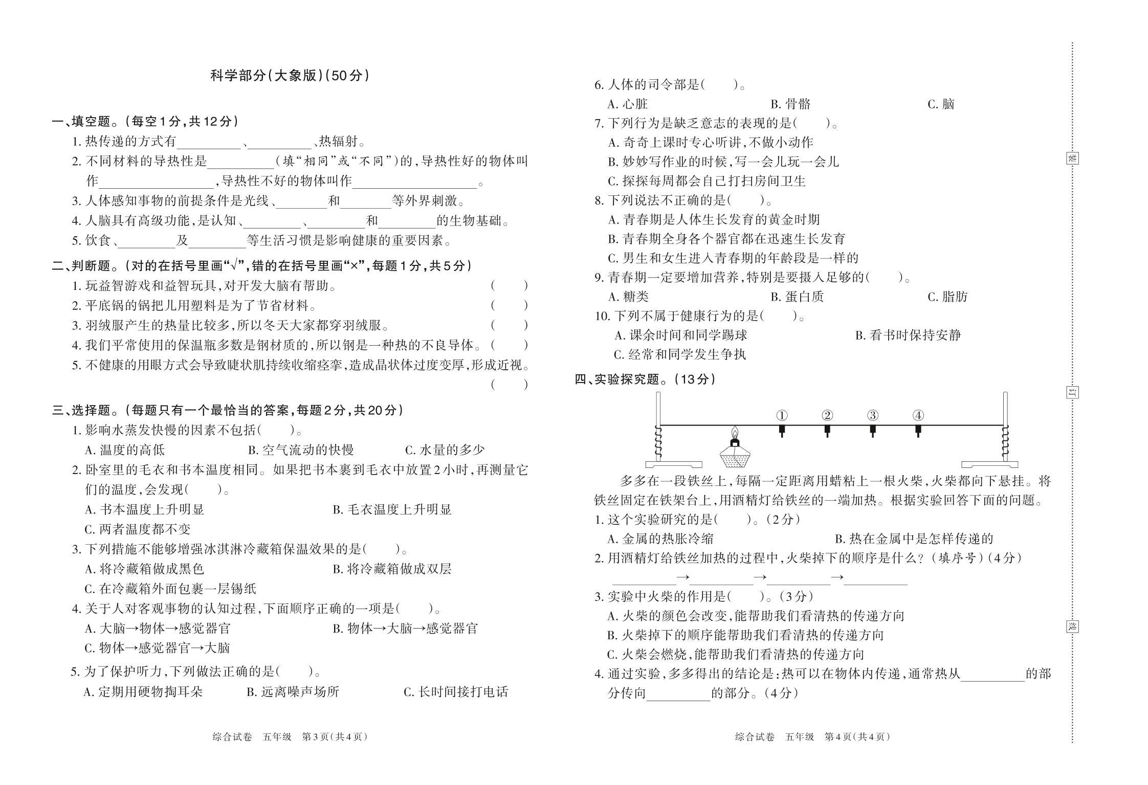河南省安阳市汤阴县任固中心小学2022—2023学年上学期期中学情诊断五年级科学(大象版)