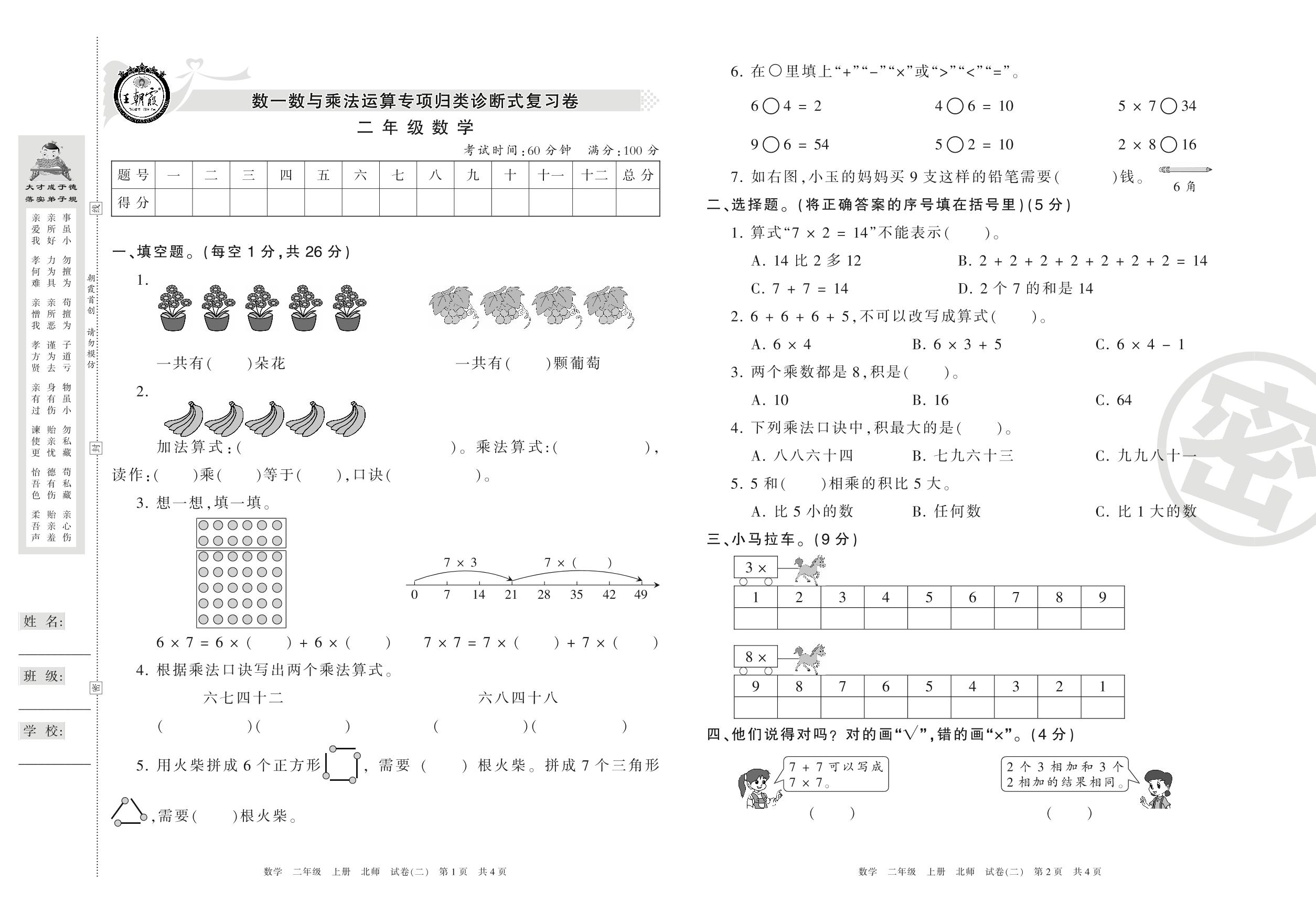 王朝霞期末专项卷二年级上册数学(北师版)_R210803102544【2】