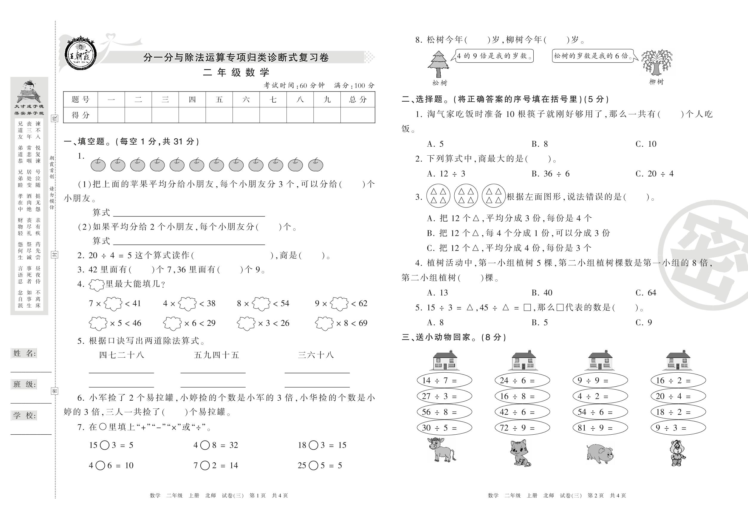 王朝霞期末专项卷二年级上册数学(北师版)_R210803102550【3】