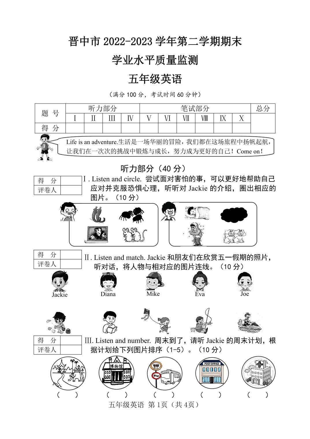 山西省晋中市2022-2023学年第二学期五年级期末学业水平监测英语试题(剑桥版)【无听力音频】