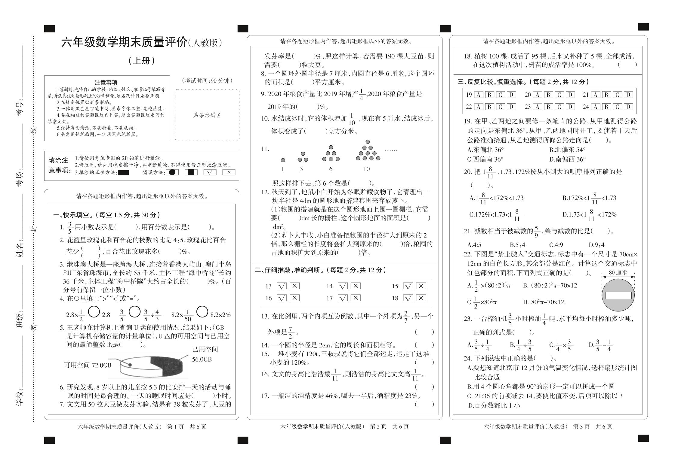 河北省邢台市经济开发区2022-2023学年第一学期期末质量评价六年级数学(人教版)
