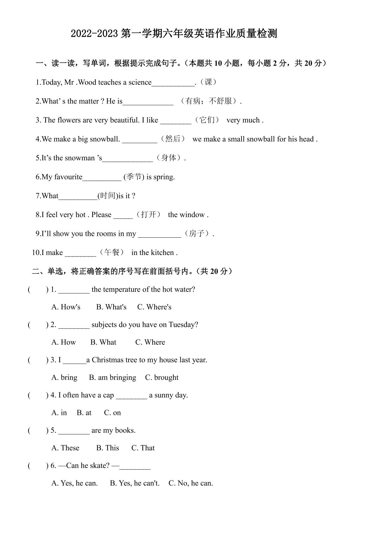 河北省保定市蠡县2022-2023学年第一学期期末质量检测六年级英语(冀教版)【无听力音频】