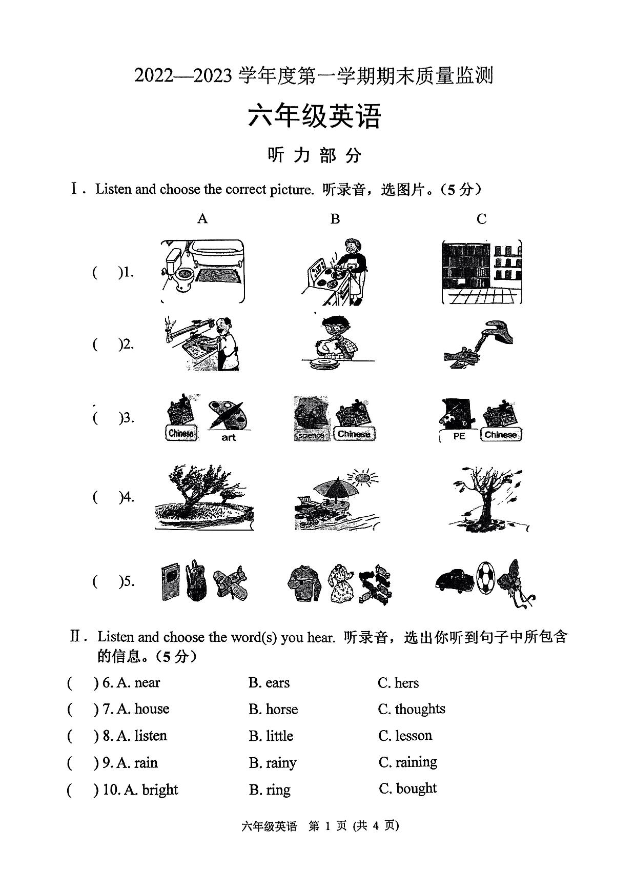 六年级英语冀教版上册期末卷