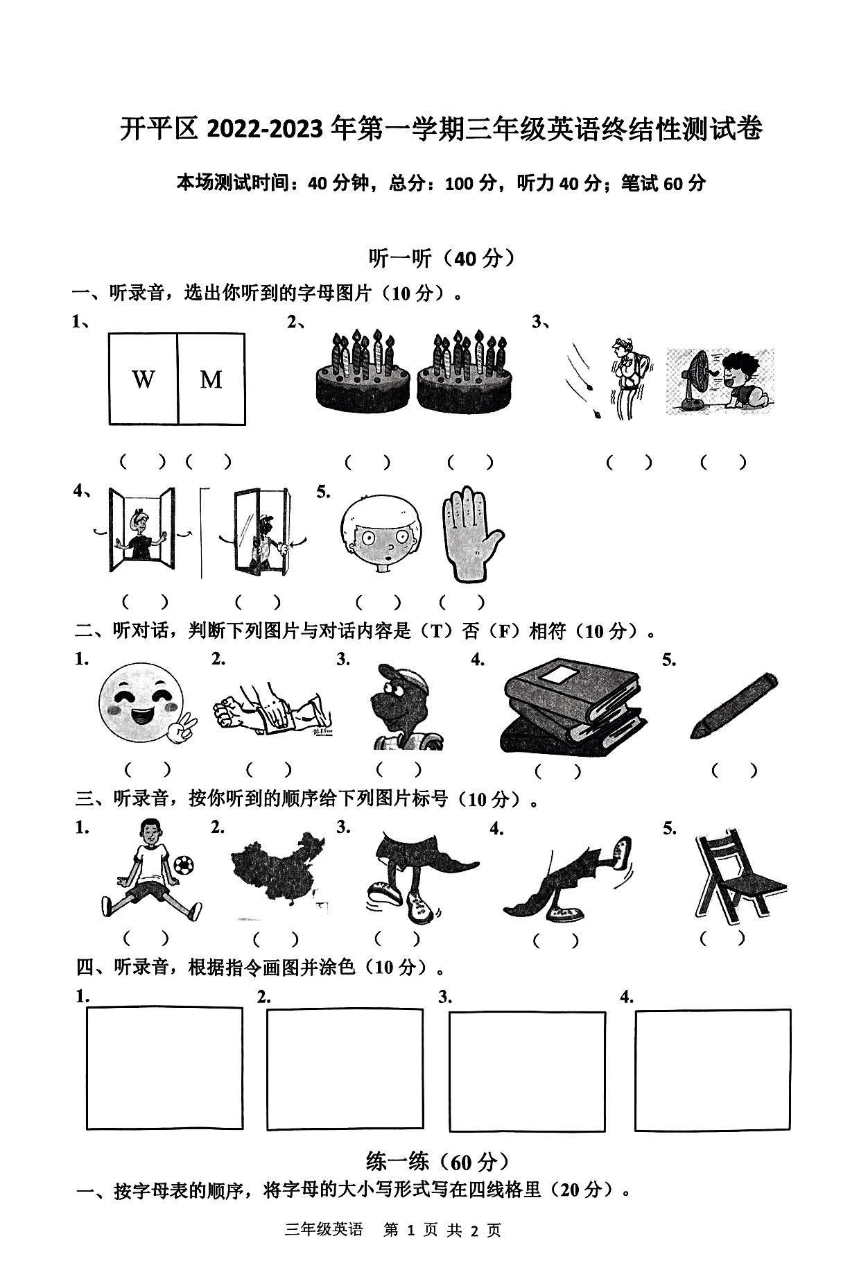 河北省唐山市开平区2022-2023学年第一学期期末终结性测试卷三年级英语(冀教版)【无听力音频】