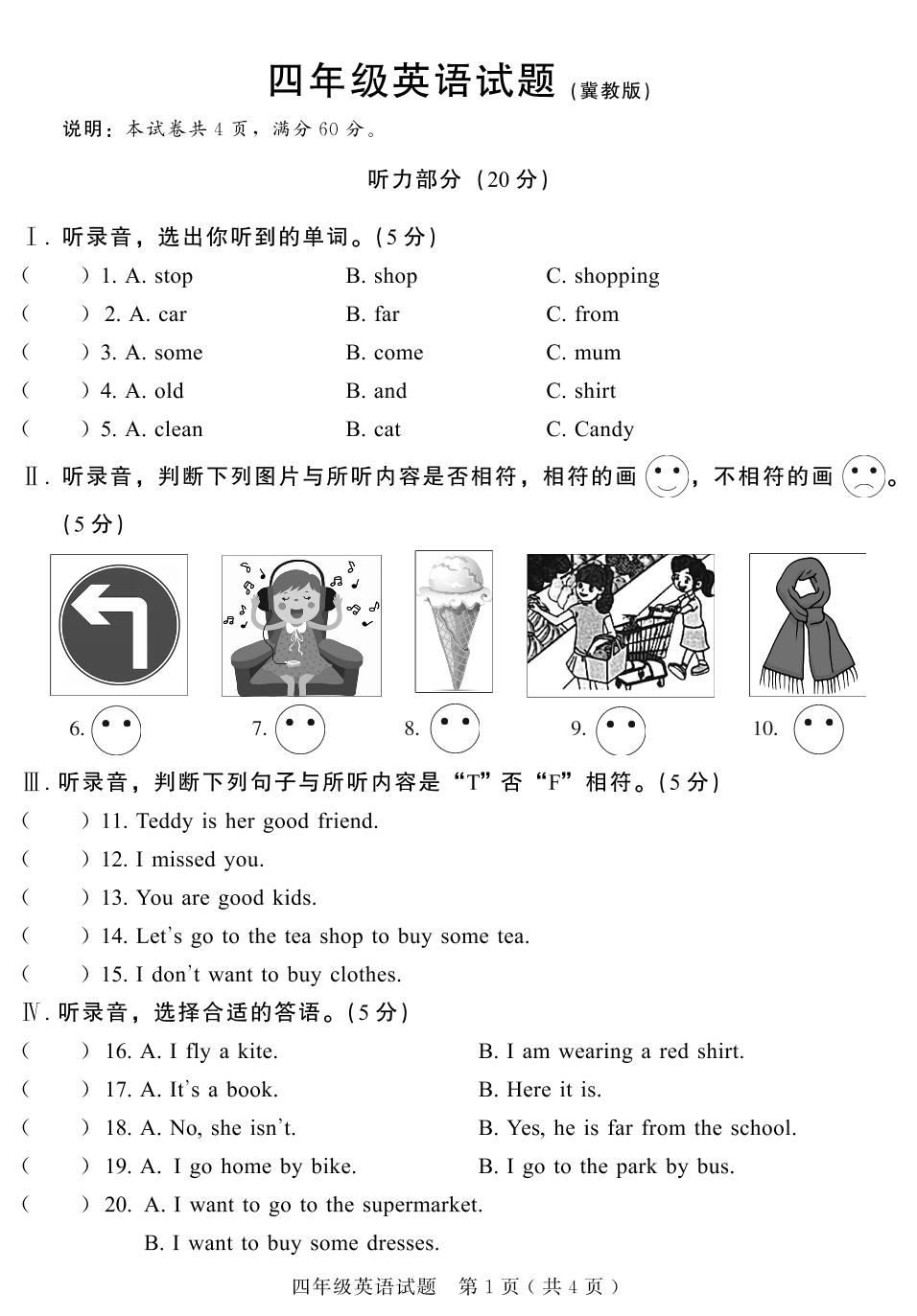 河北省承德市双滦区2022-2023学年第一学期期末试题四年级英语(冀教版)【无听力音频】
