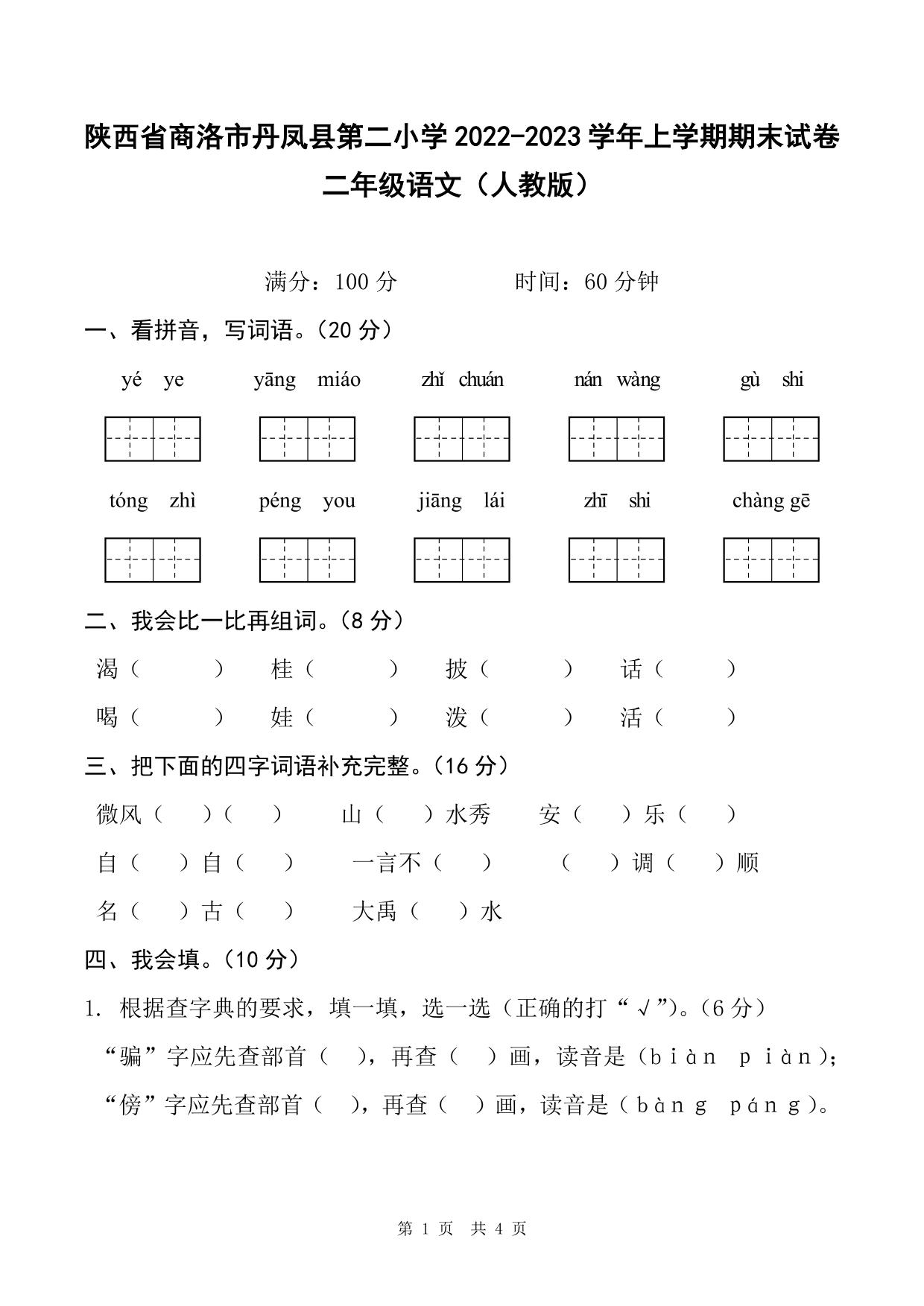陕西省商洛市丹凤县第二小学2022-2023学年上学期期末试卷二年级语文(人教版)