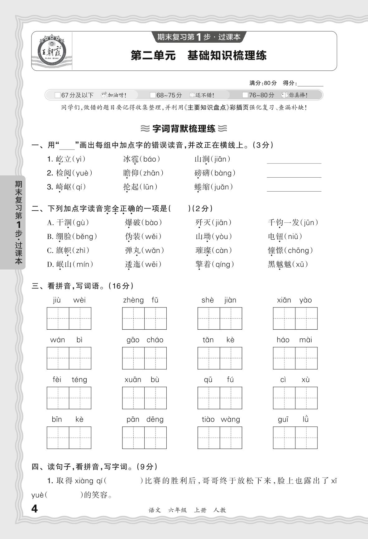 2023上册六年级语文人教版 期末过课本QMA版·第二单元 基础知识梳理练
