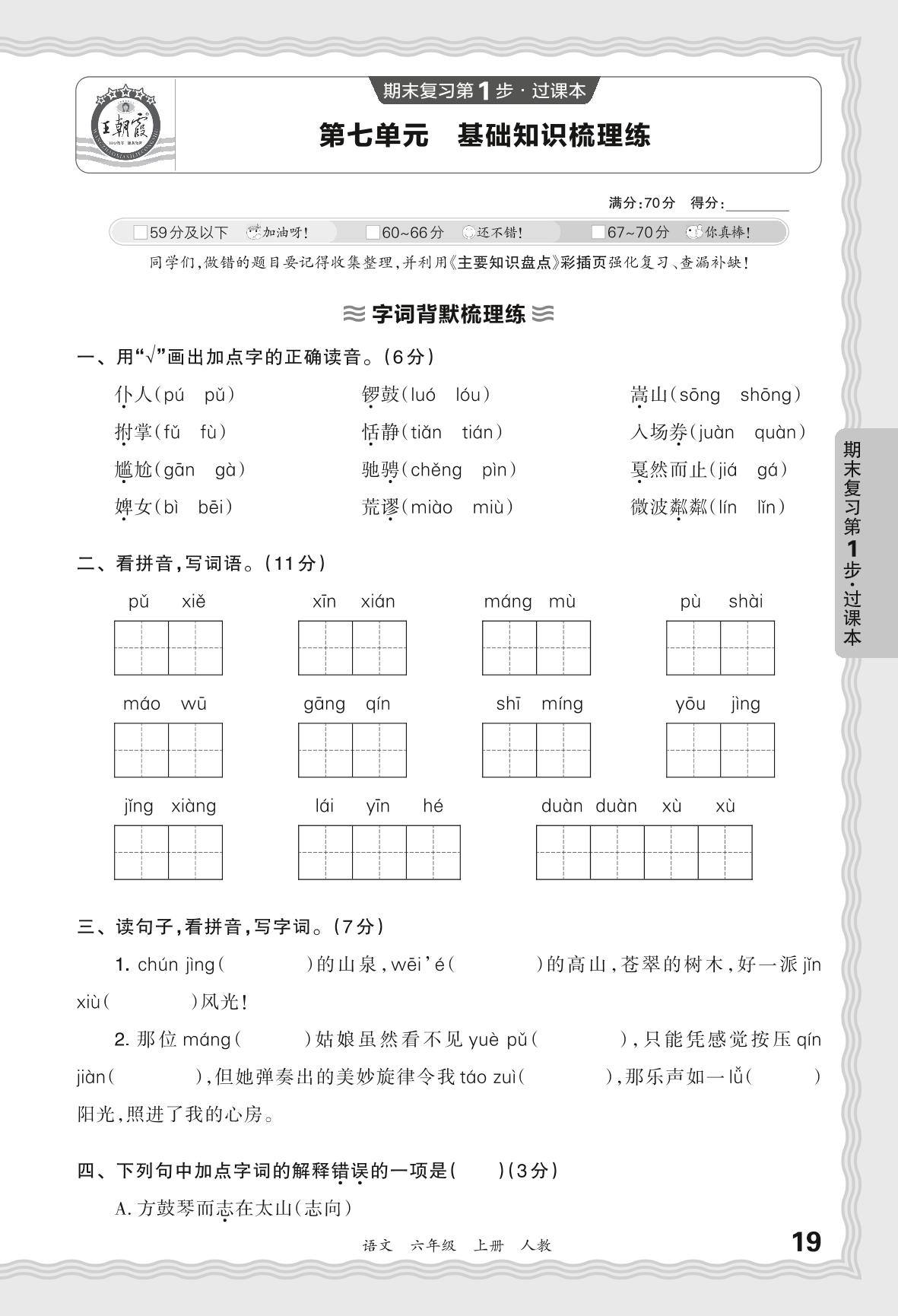 2023上册六年级语文人教版 期末过课本QMA版·第七单元 基础知识梳理练