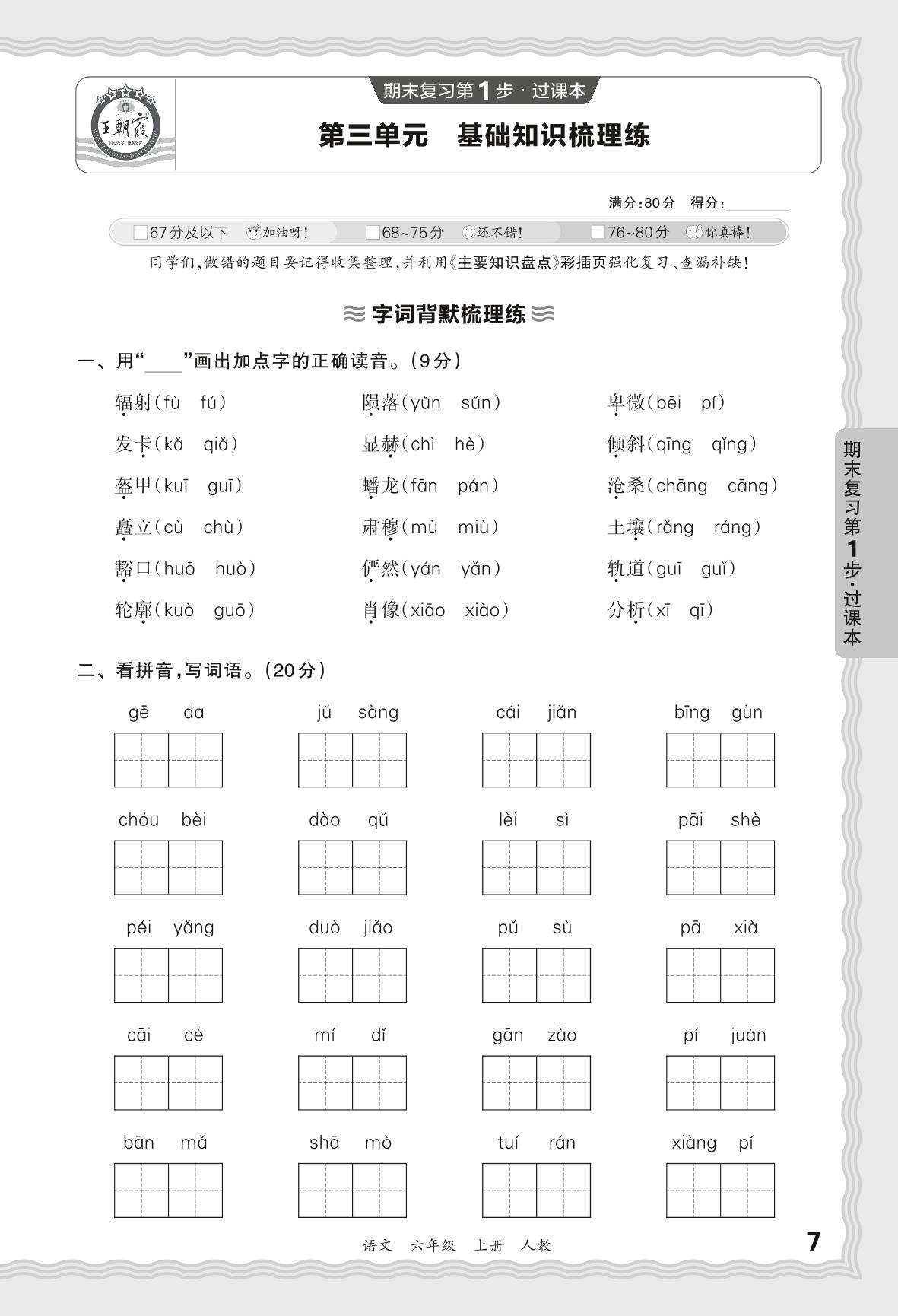 2023上册六年级语文人教版 期末过课本QMA版·第三单元 基础知识梳理练