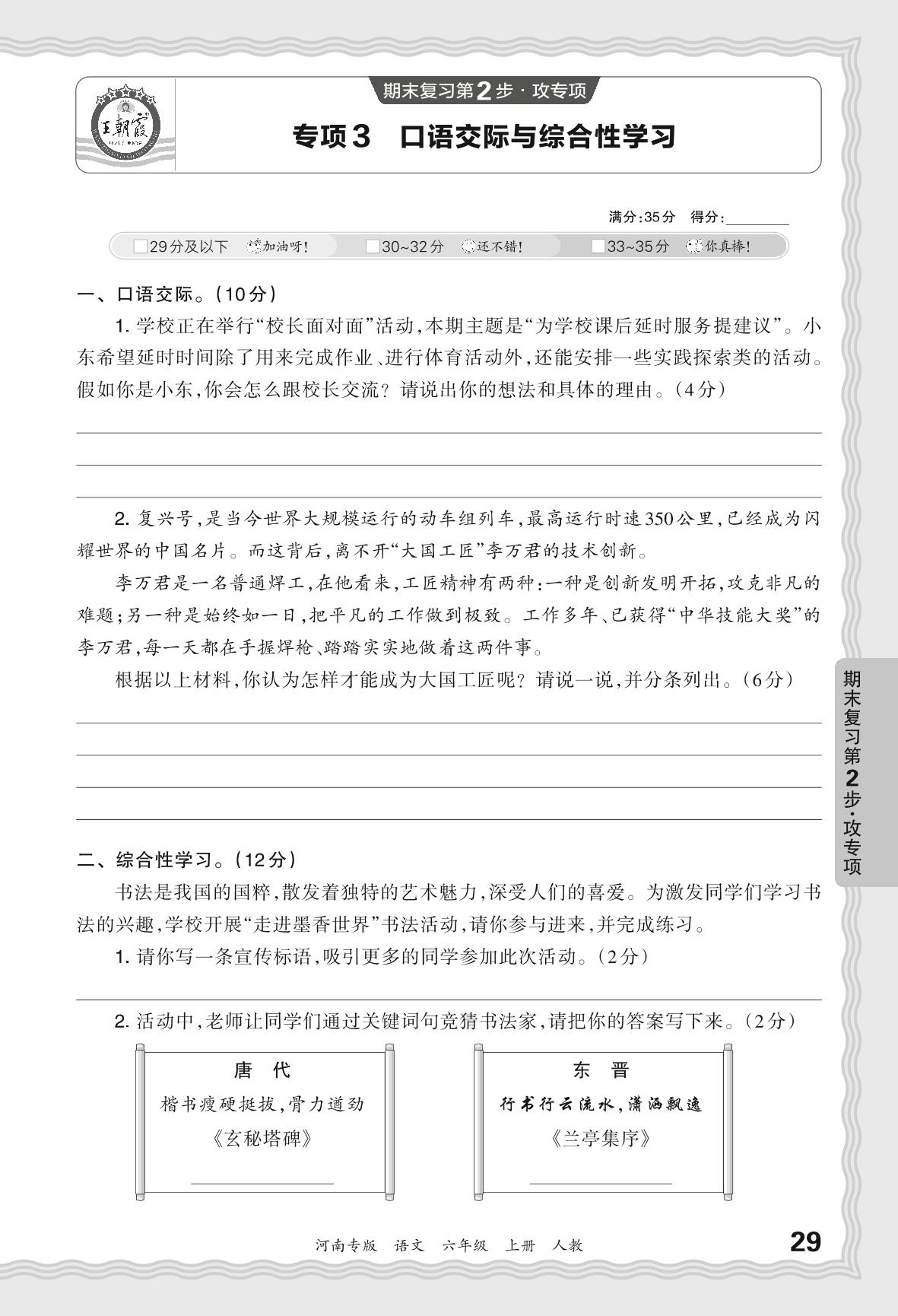 2023上册六年级语文人教版 期末专项卷·口语交际与综合性学习【3】