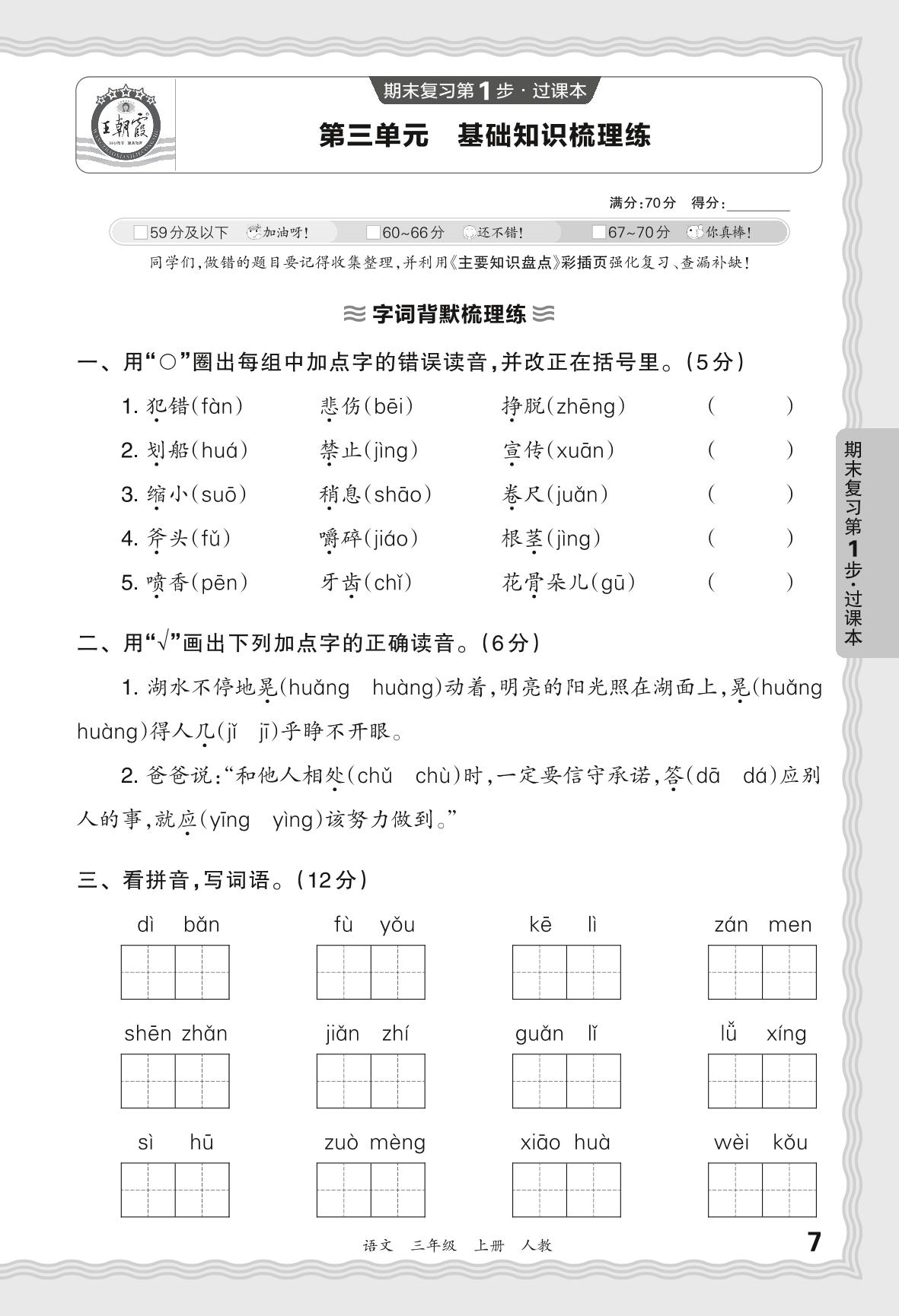 2023秋上册三年级语文人教版 期末过课本QMA版·第三单元 基础知识梳理练