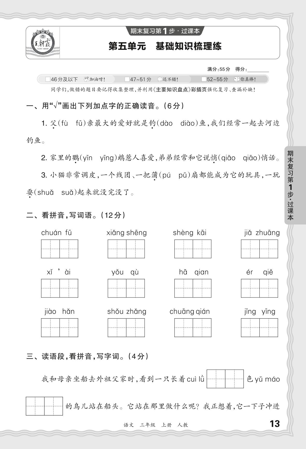 2023秋上册三年级语文人教版 期末过课本QMA版·第五单元 基础知识梳理练