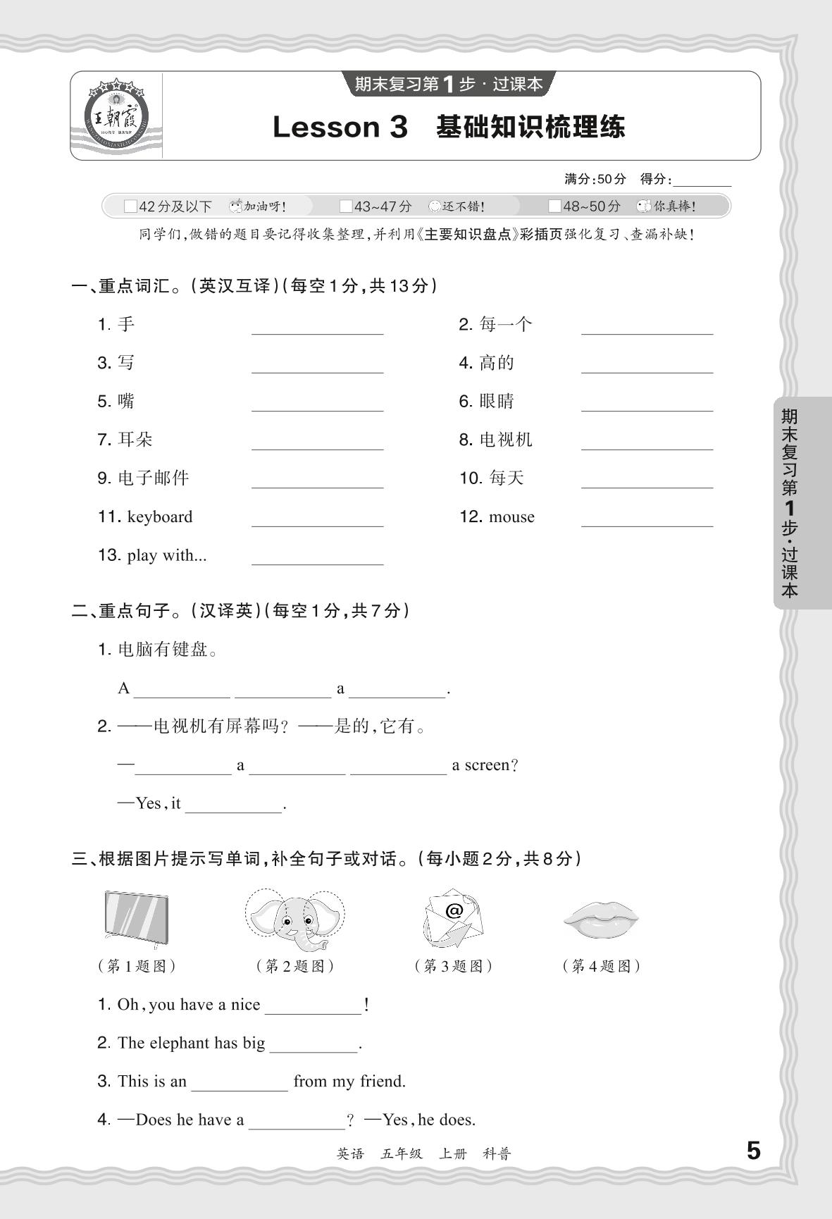 2023秋上册五年级英语科普版 期末过课本·Lesson 3 基础知识梳理练【3】