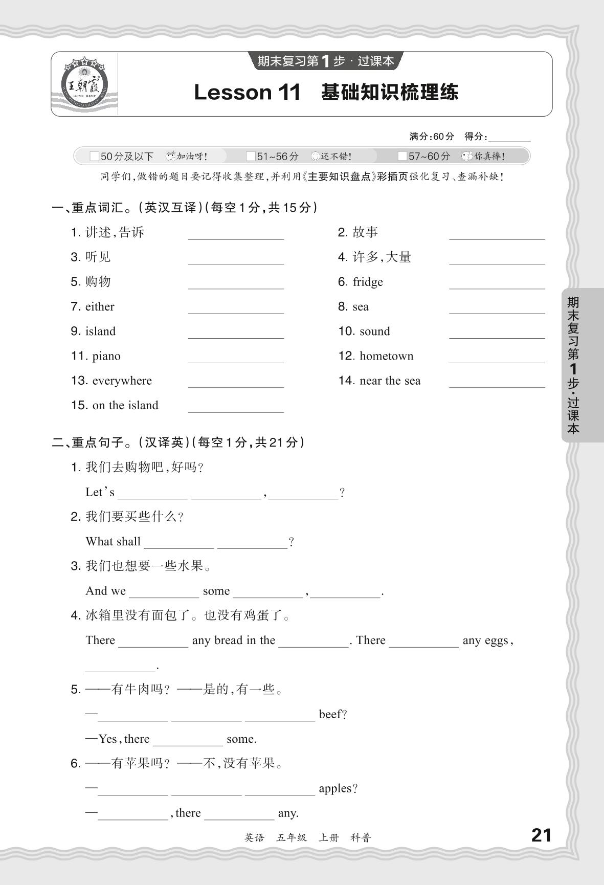 2023秋上册五年级英语科普版 期末过课本·Lesson 11 基础知识梳理练【11】