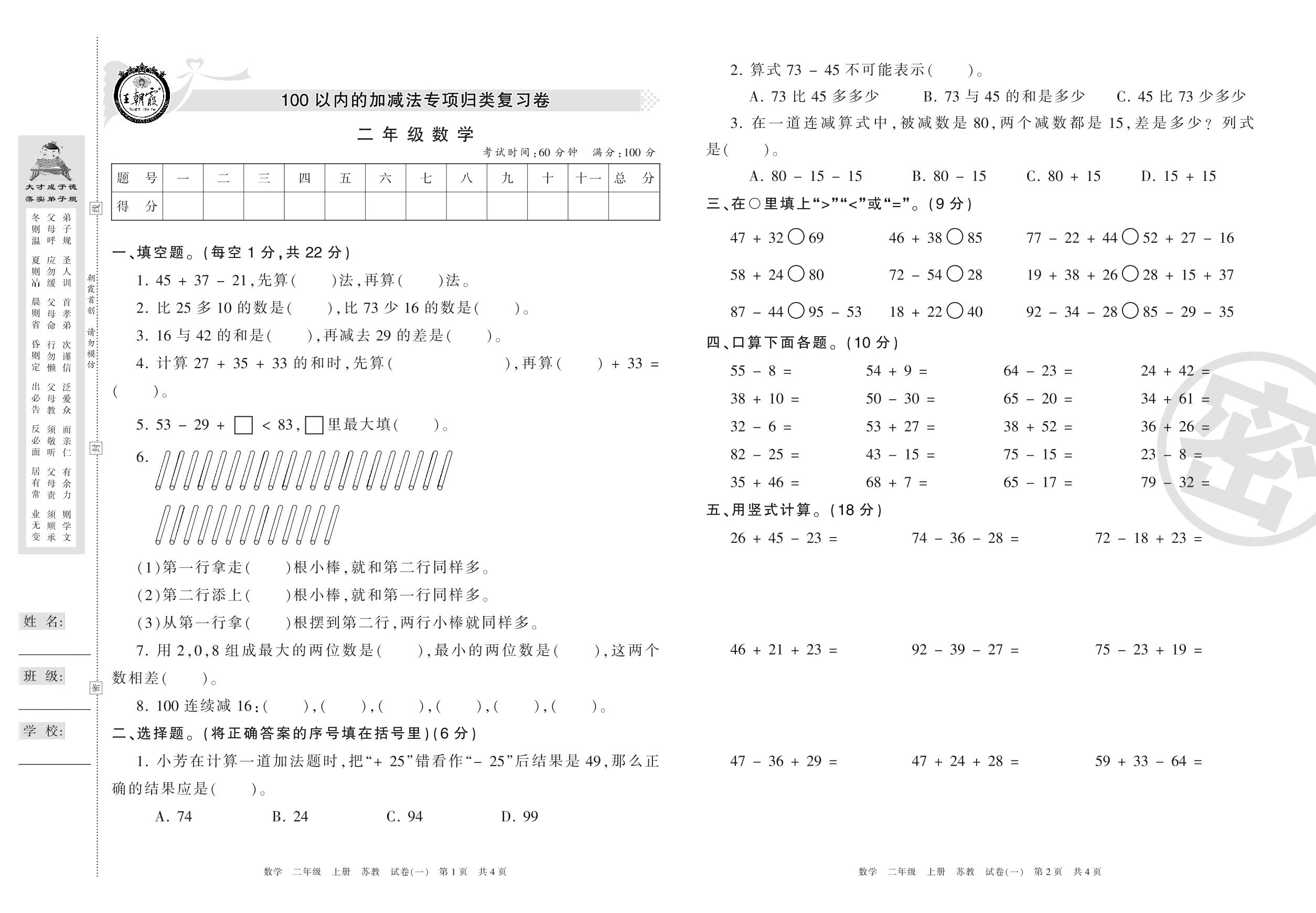王朝霞期末专项卷二年级上册数学(苏教版)_R210803102925【1】