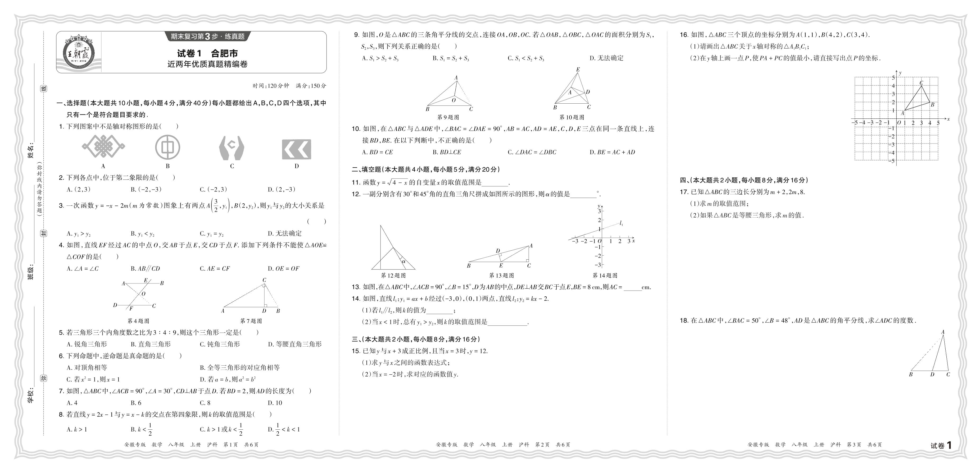 2023年秋安徽省合肥市近两年优质真题精编卷八年级上册期末数学(沪科版)【1】