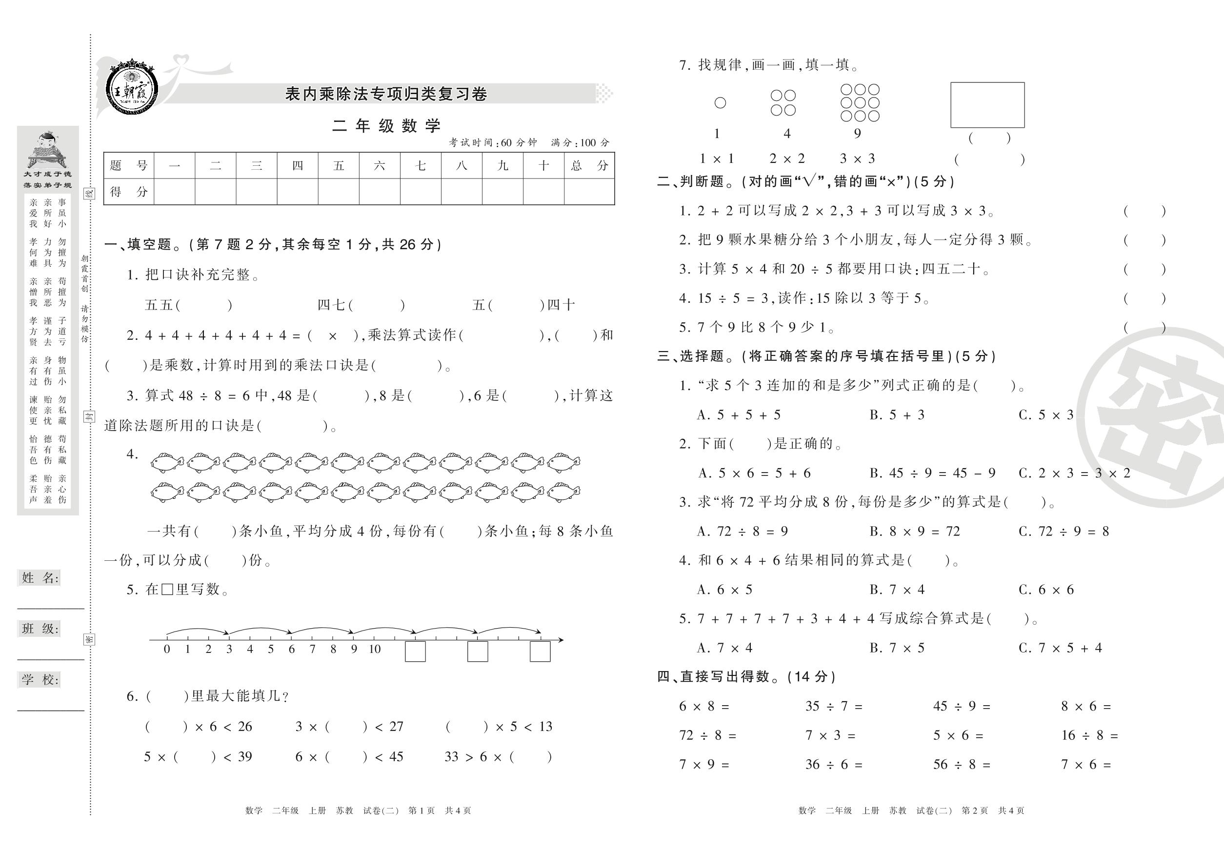 王朝霞期末专项卷二年级上册数学(苏教版)_R210803102927【2】