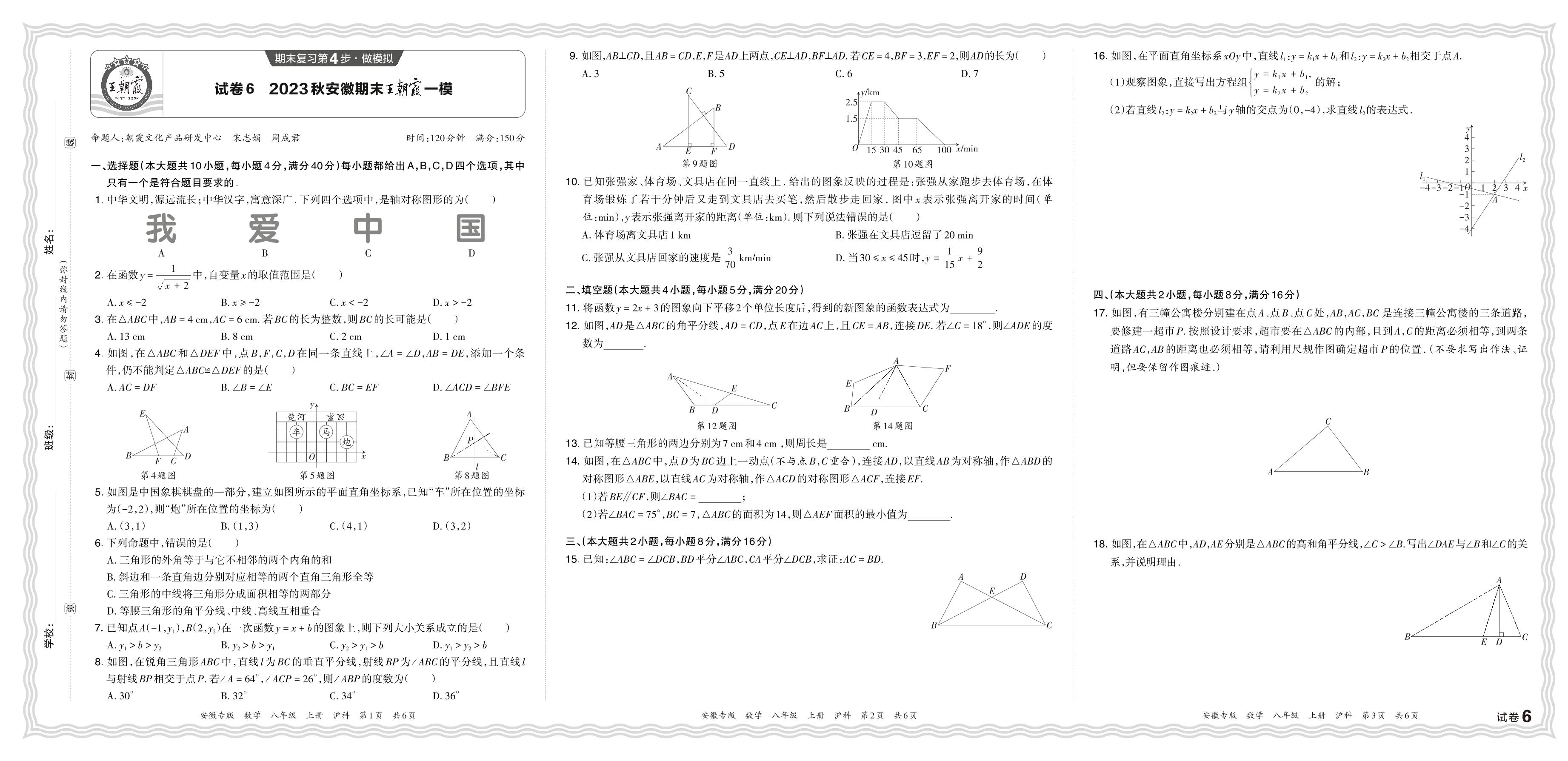 2023秋上册八年级数学沪科版 安徽期末王朝霞一模