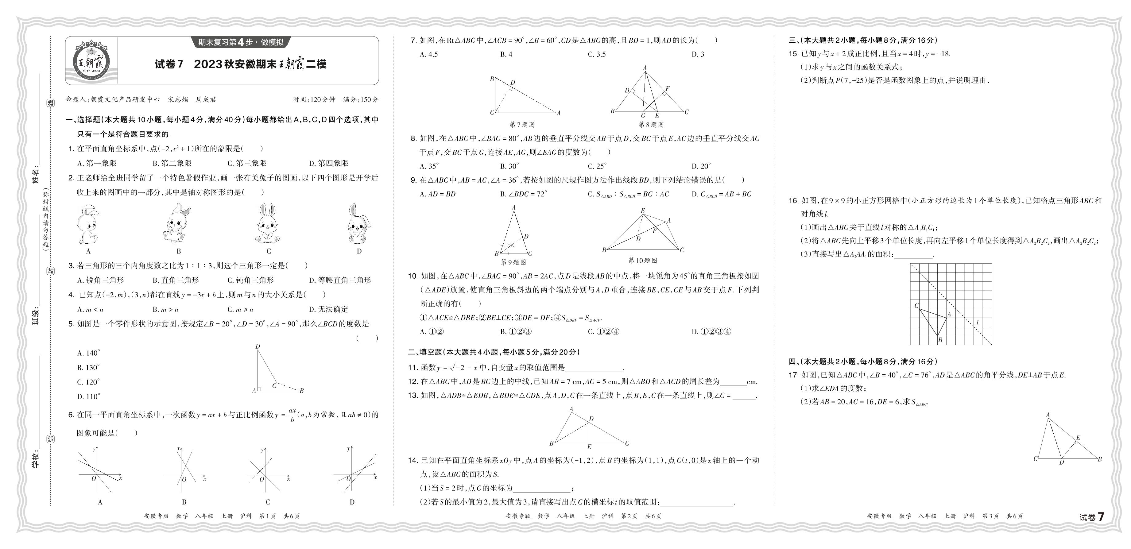 2023秋上册八年级数学沪科版 安徽期末王朝霞二模