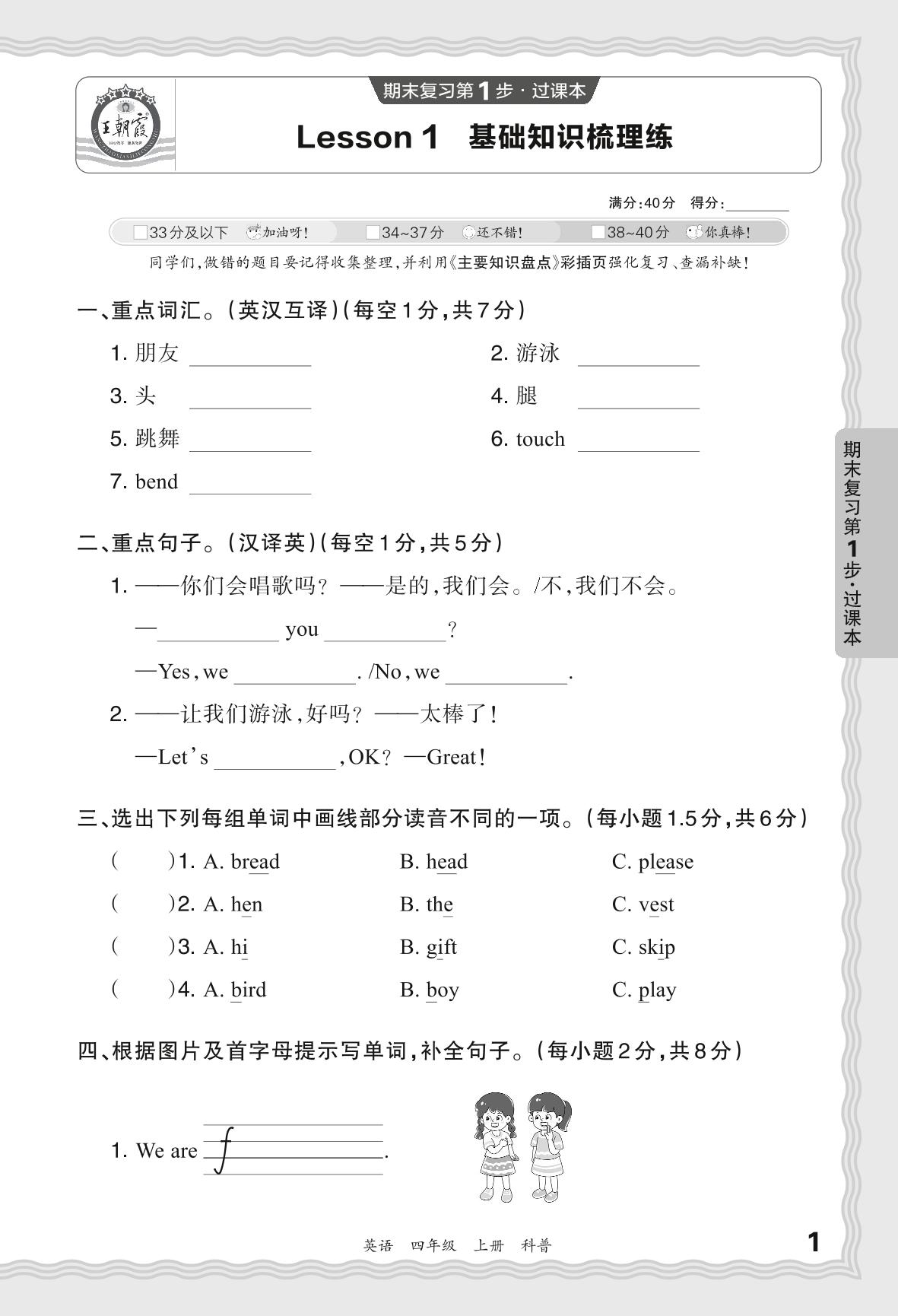 2023秋上册四年级英语科普版 期末过课本·Lesson 1 基础知识梳理练【1】