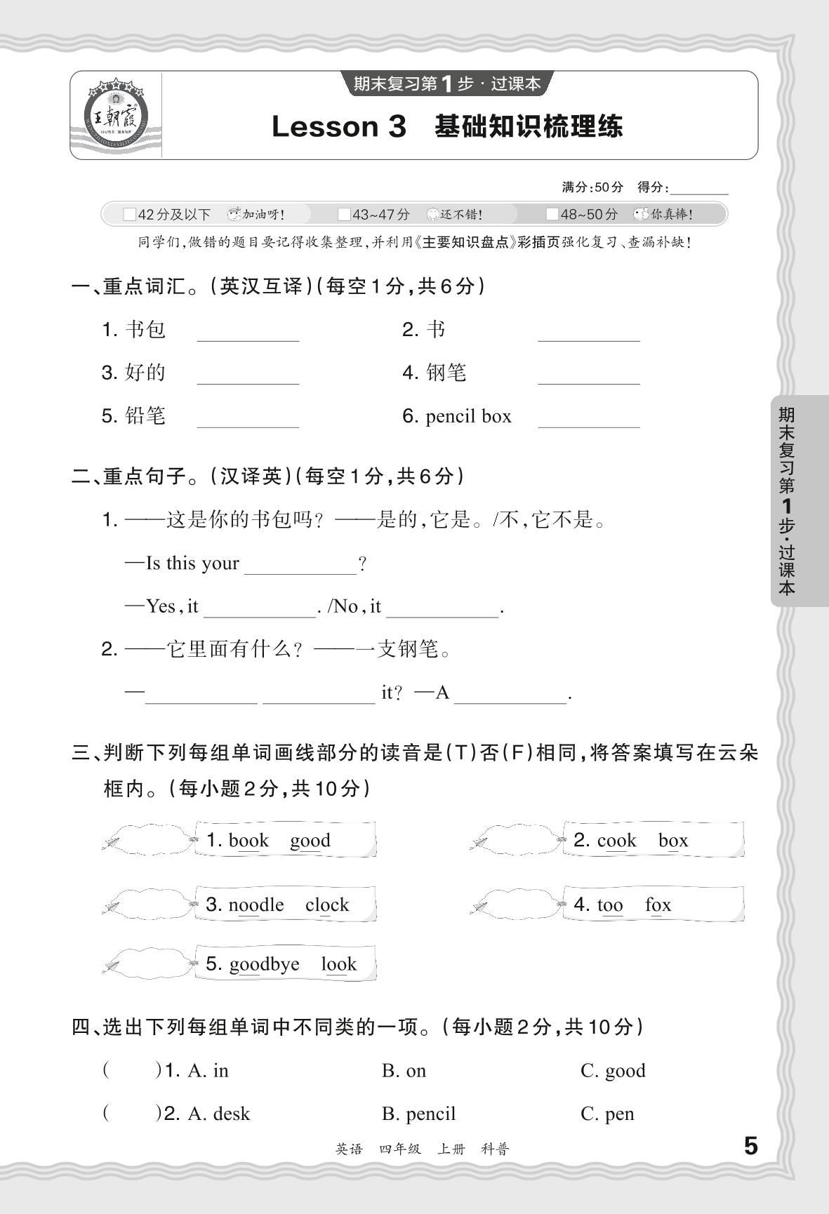 2023秋上册四年级英语科普版 期末过课本·Lesson 3 基础知识梳理练【3】