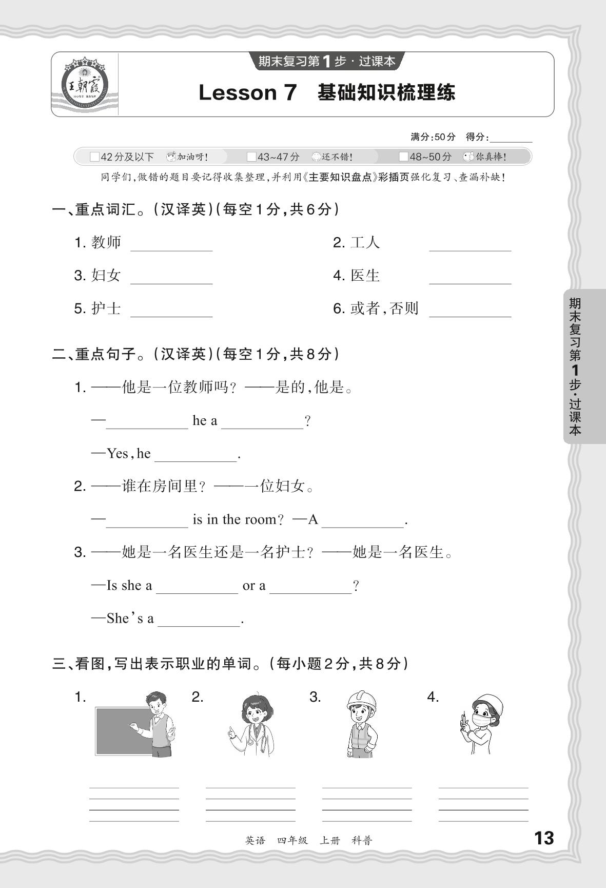 2023秋上册四年级英语科普版 期末过课本·Lesson 7 基础知识梳理练【7】