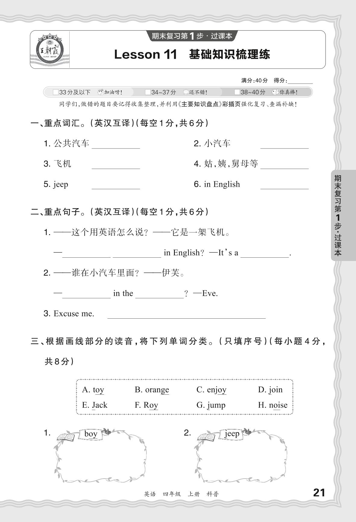 2023秋上册四年级英语科普版 期末过课本·Lesson 11 基础知识梳理练【11】