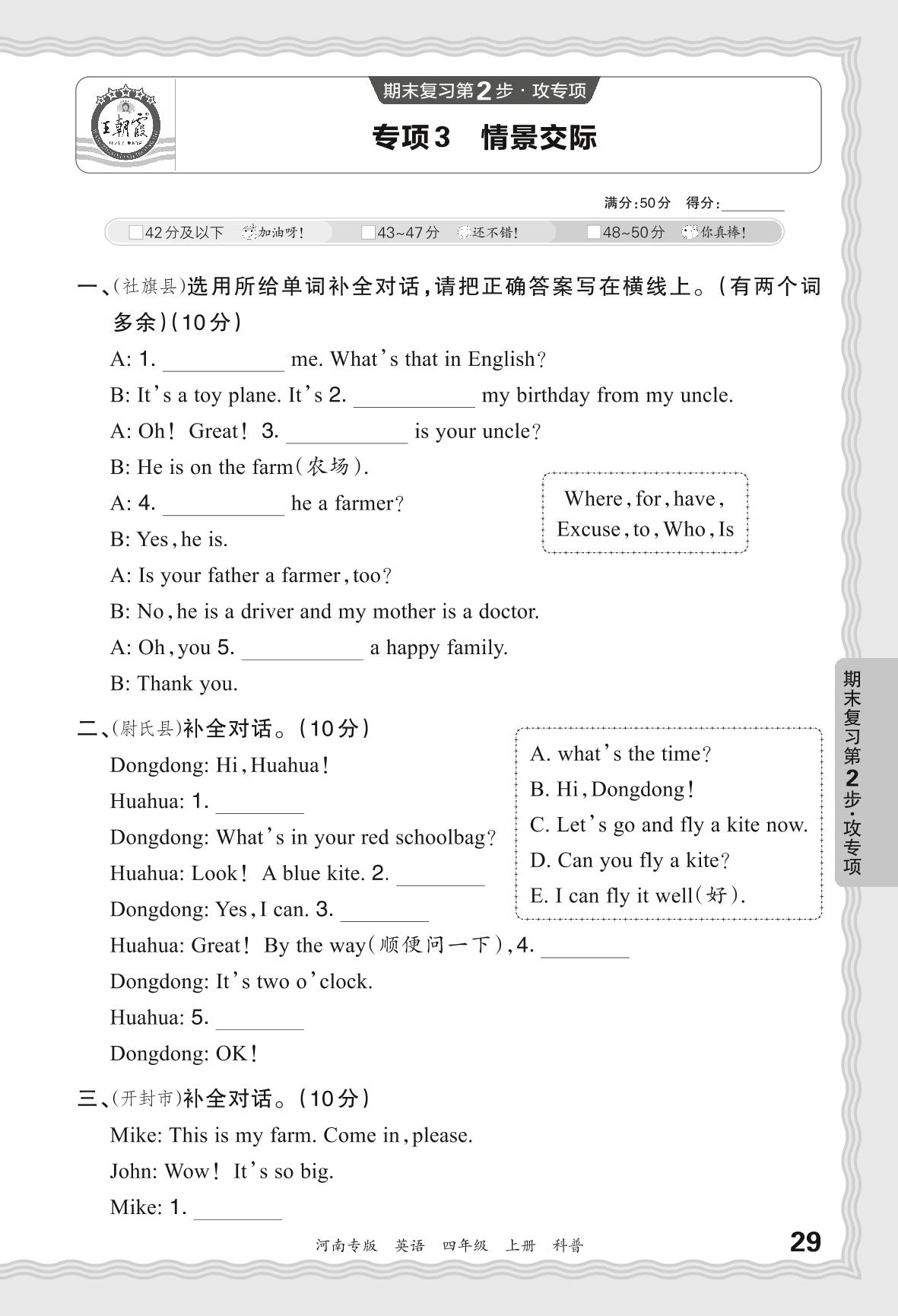 2023秋上册四年级英语科普版 期末专项卷·情景交际【3】