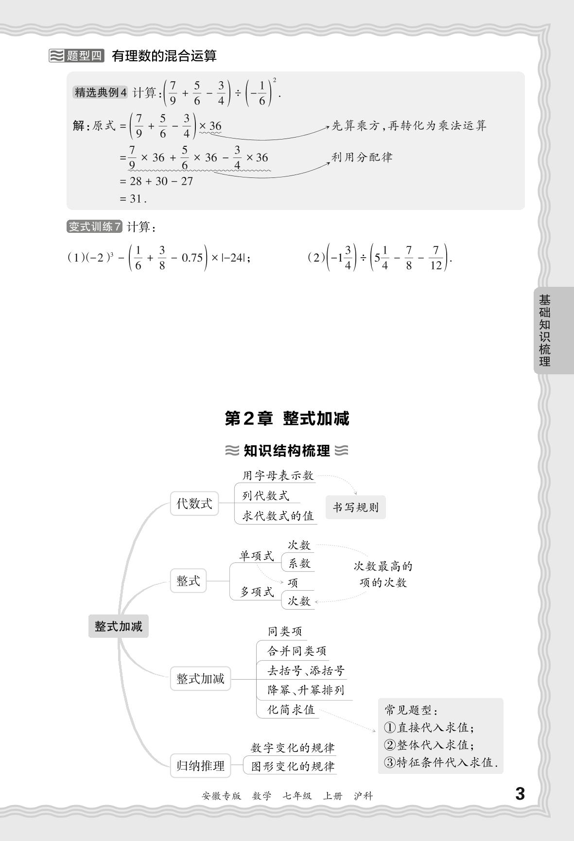 2023秋上册七年级数学沪科版 期末过课本·基础知识梳理 第2章 整式加减