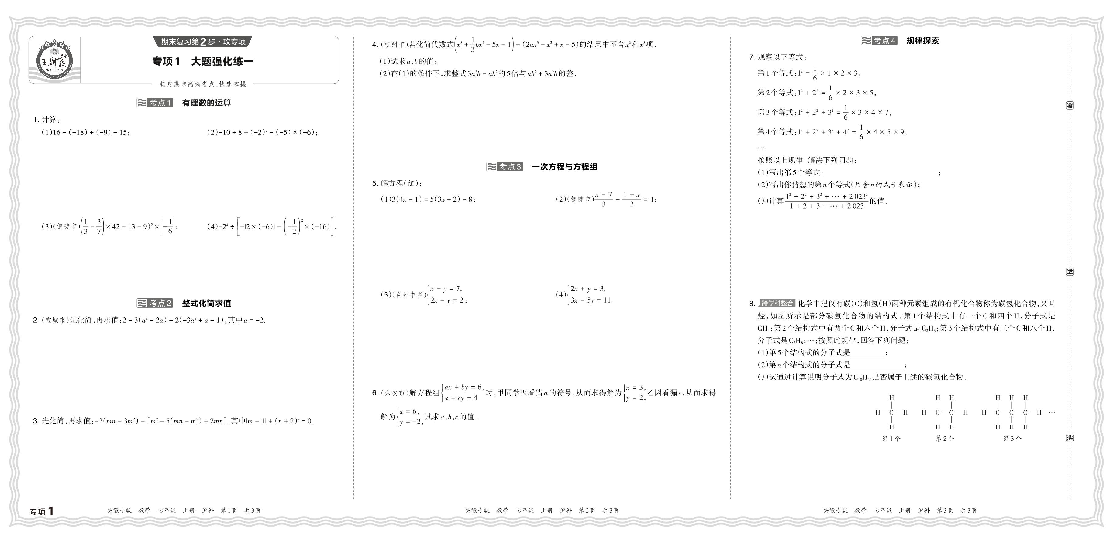 七年级数学沪科版上册专项卷
