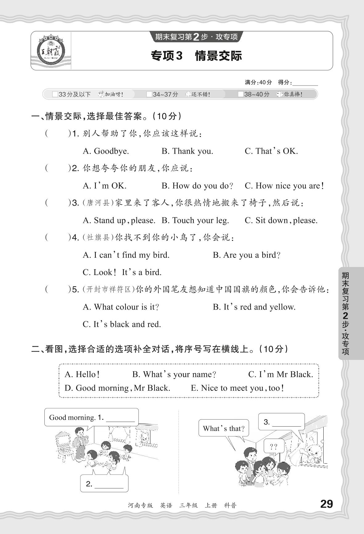 2023秋上册三年级英语科普版 期末专项卷·补全短文【3】