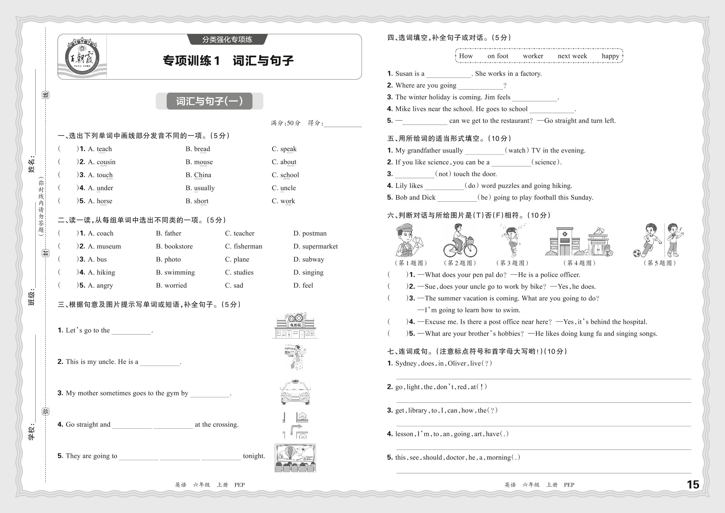 六年级英语人教PEP版(三起始)上册专项卷