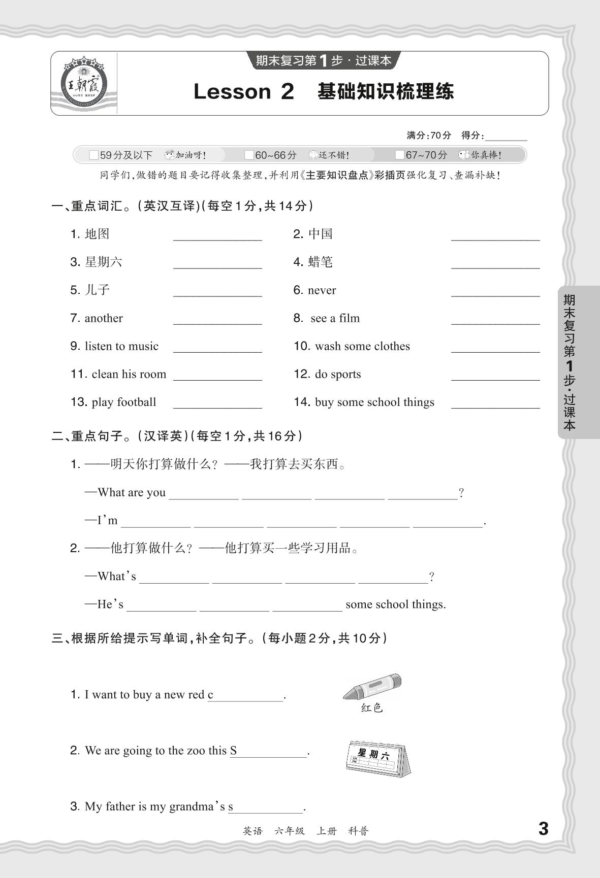 2023秋上册六年级英语科普版 期末过课本·Lesson 2 基础知识梳理练【2】