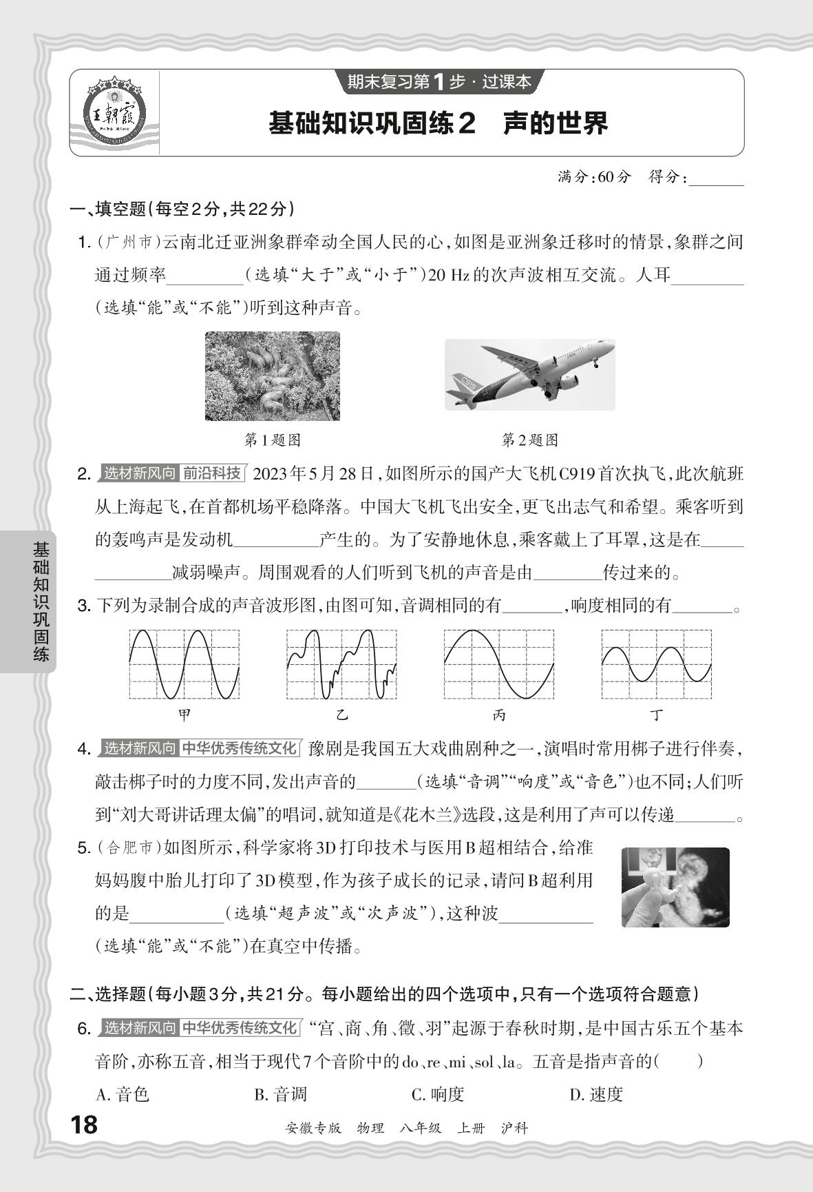 2023秋上册八年级物理沪科版 期末过课本·基础知识巩固练 声的世界【2】