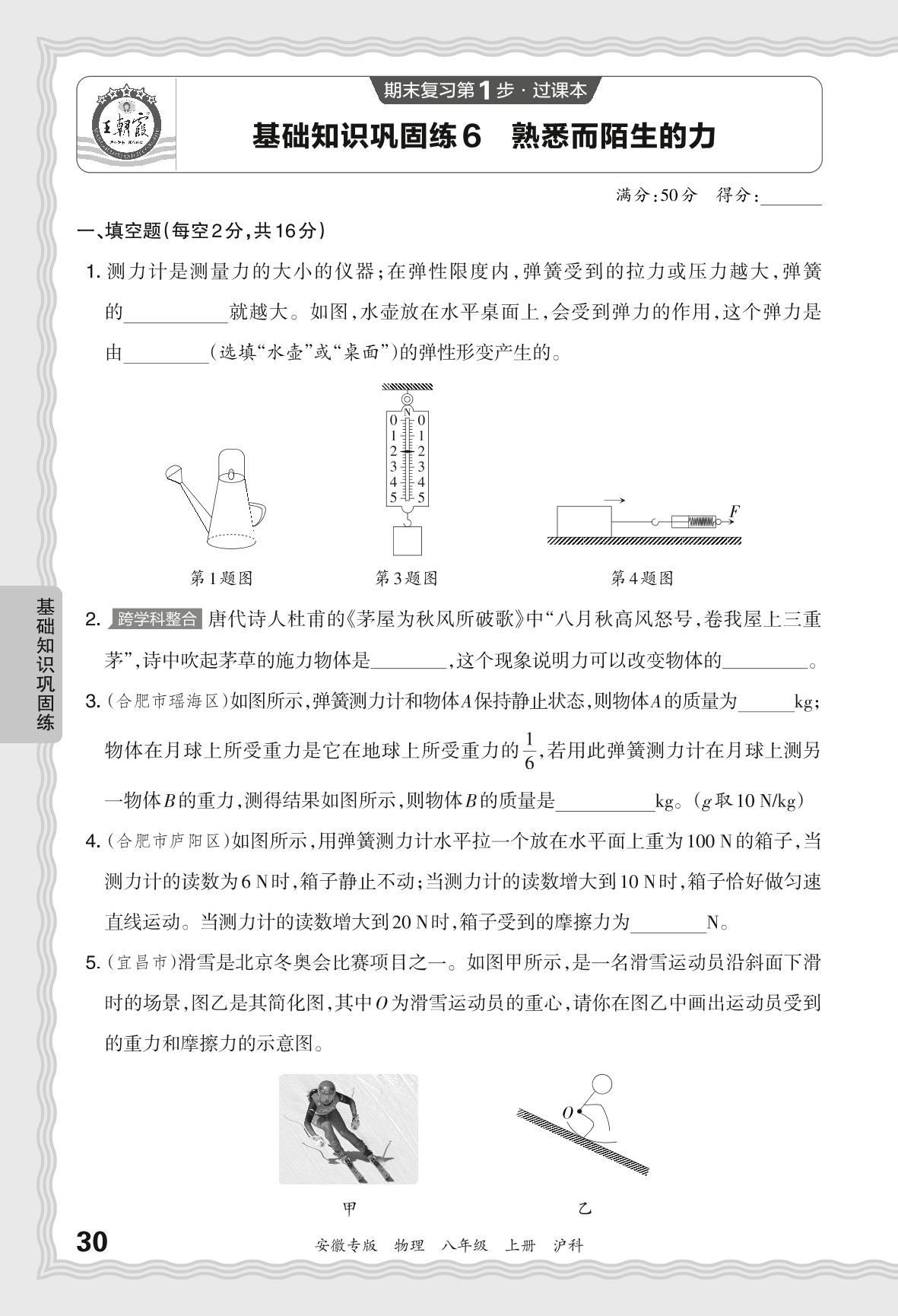 2023秋上册八年级物理沪科版 期末过课本·基础知识巩固练 熟悉而陌生的力【6】