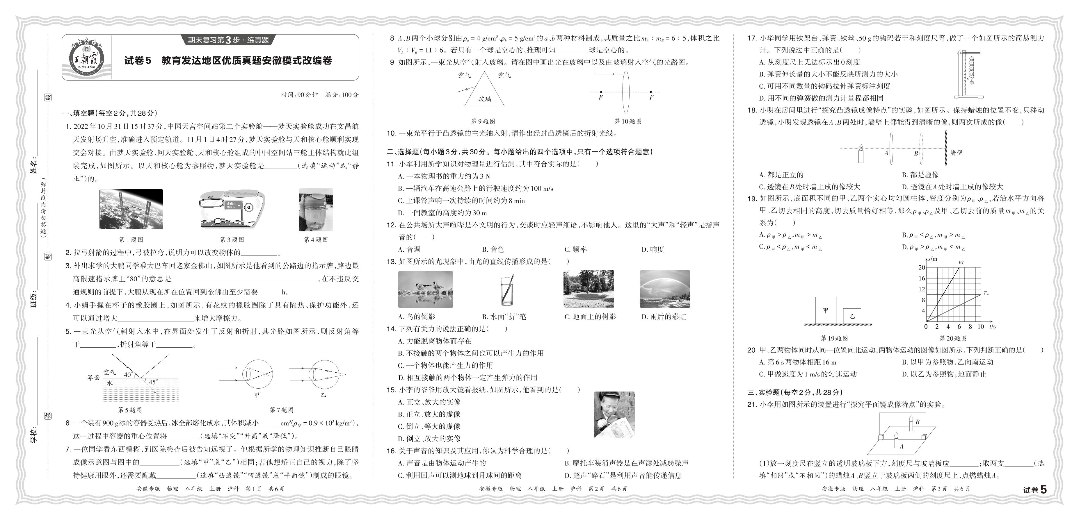 2023年秋教育发达地区优质真题安徽模式改编卷八年级上册期末物理(沪科版)【5】
