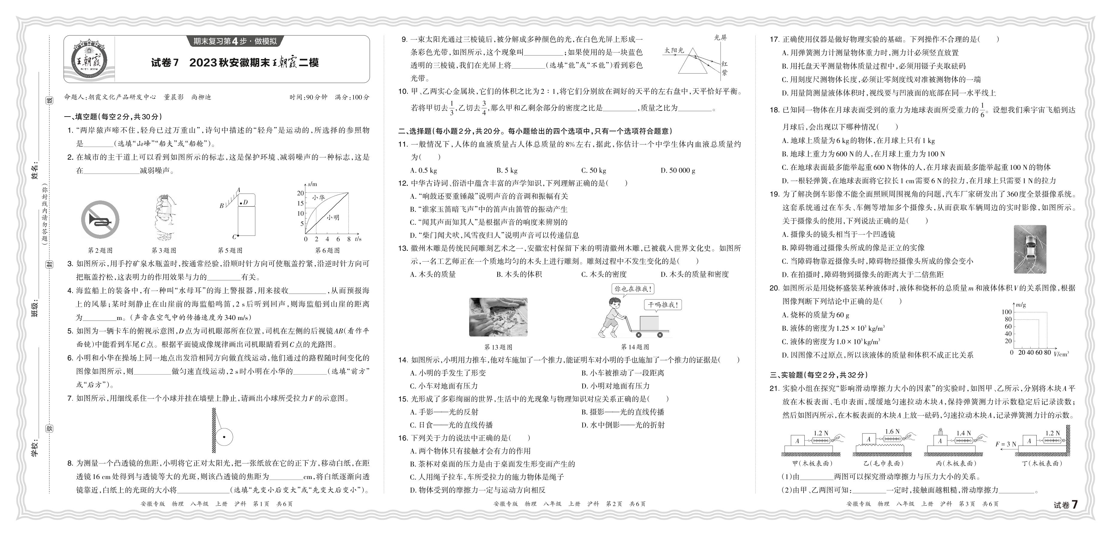 2023秋上册八年级物理沪科版 安徽期末王朝霞二模