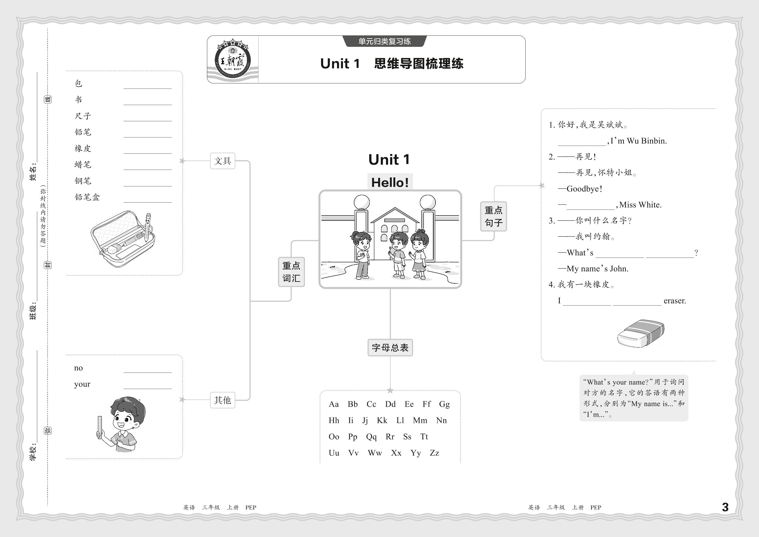 2023秋上册三年级英语人教PEP版 期末过课本·单元归类复习练—Unit 1