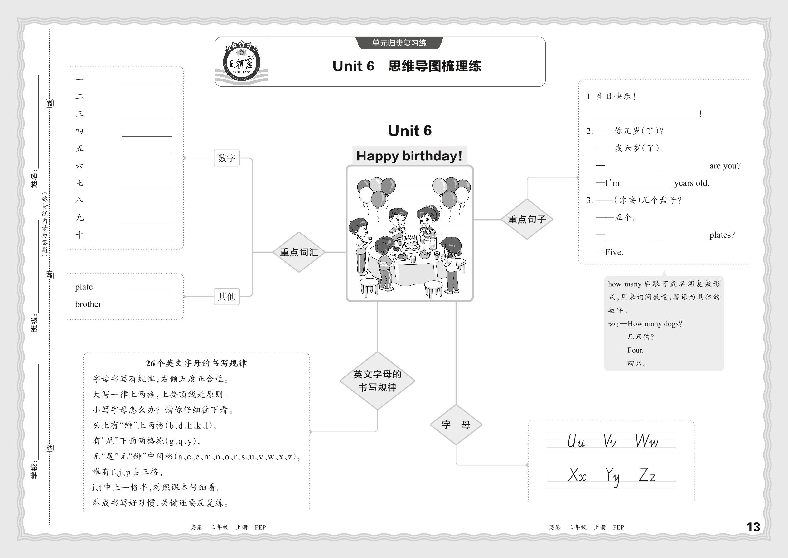 2023秋上册三年级英语人教PEP版 期末过课本·单元归类复习练—Unit 6