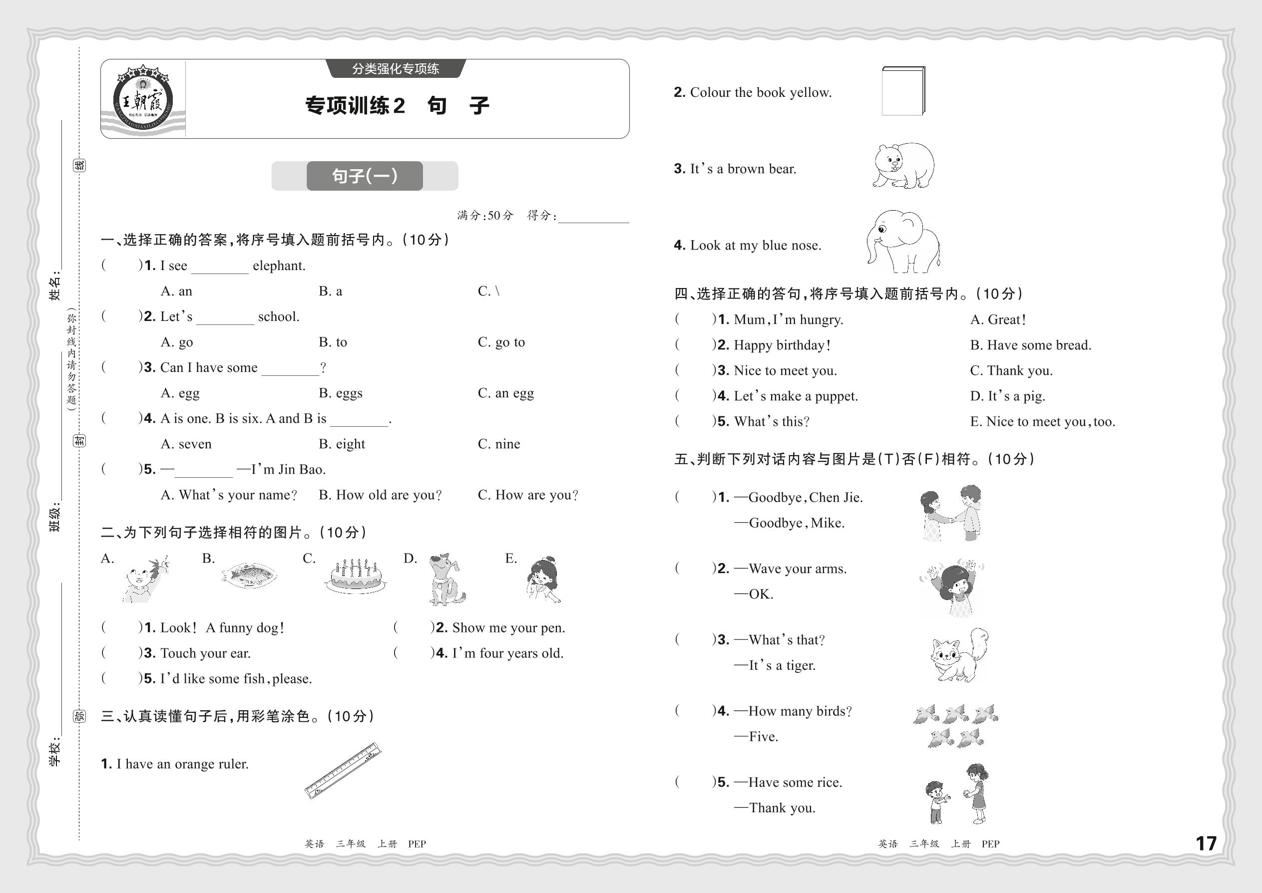 2023秋上册三年级英语人教PEP版 期末专项·句子【2】