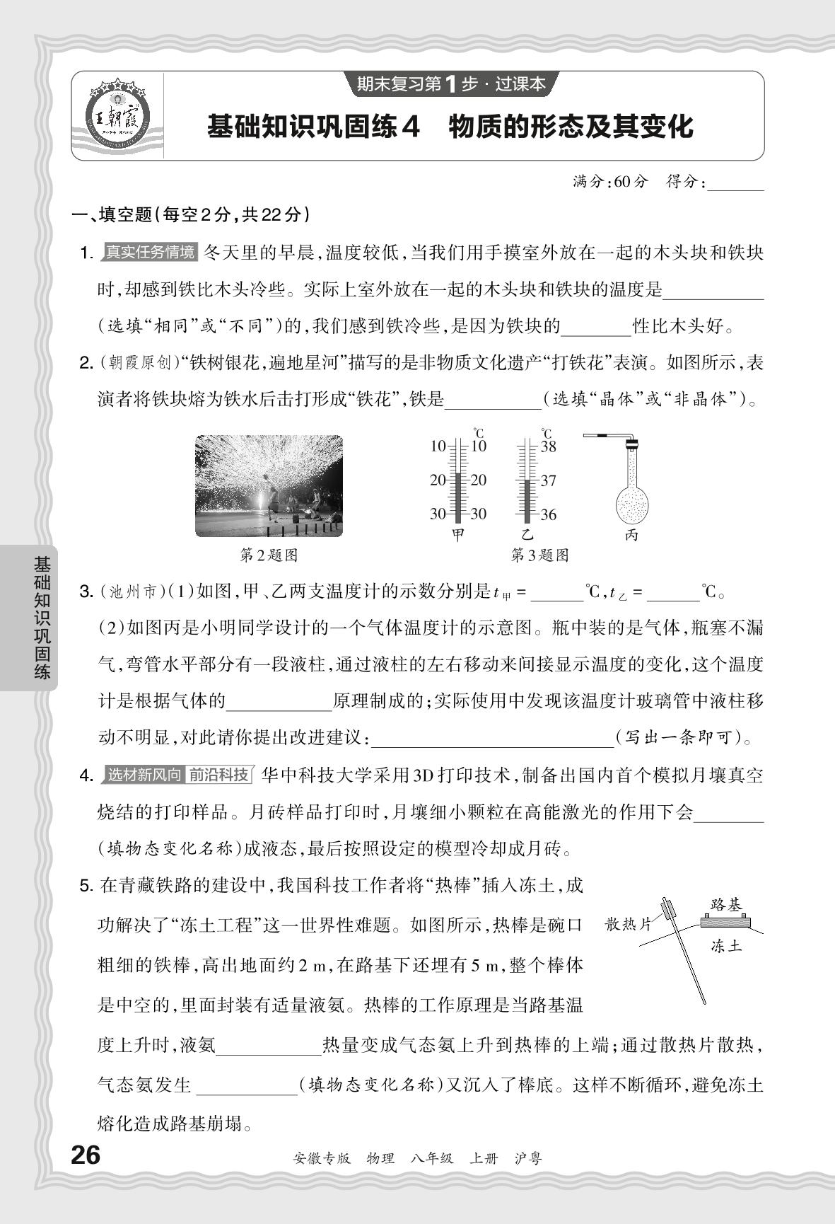 2023秋上册八年级物理沪粤版 期末过课本·基础知识巩固练 物质的形态及其变化【4】