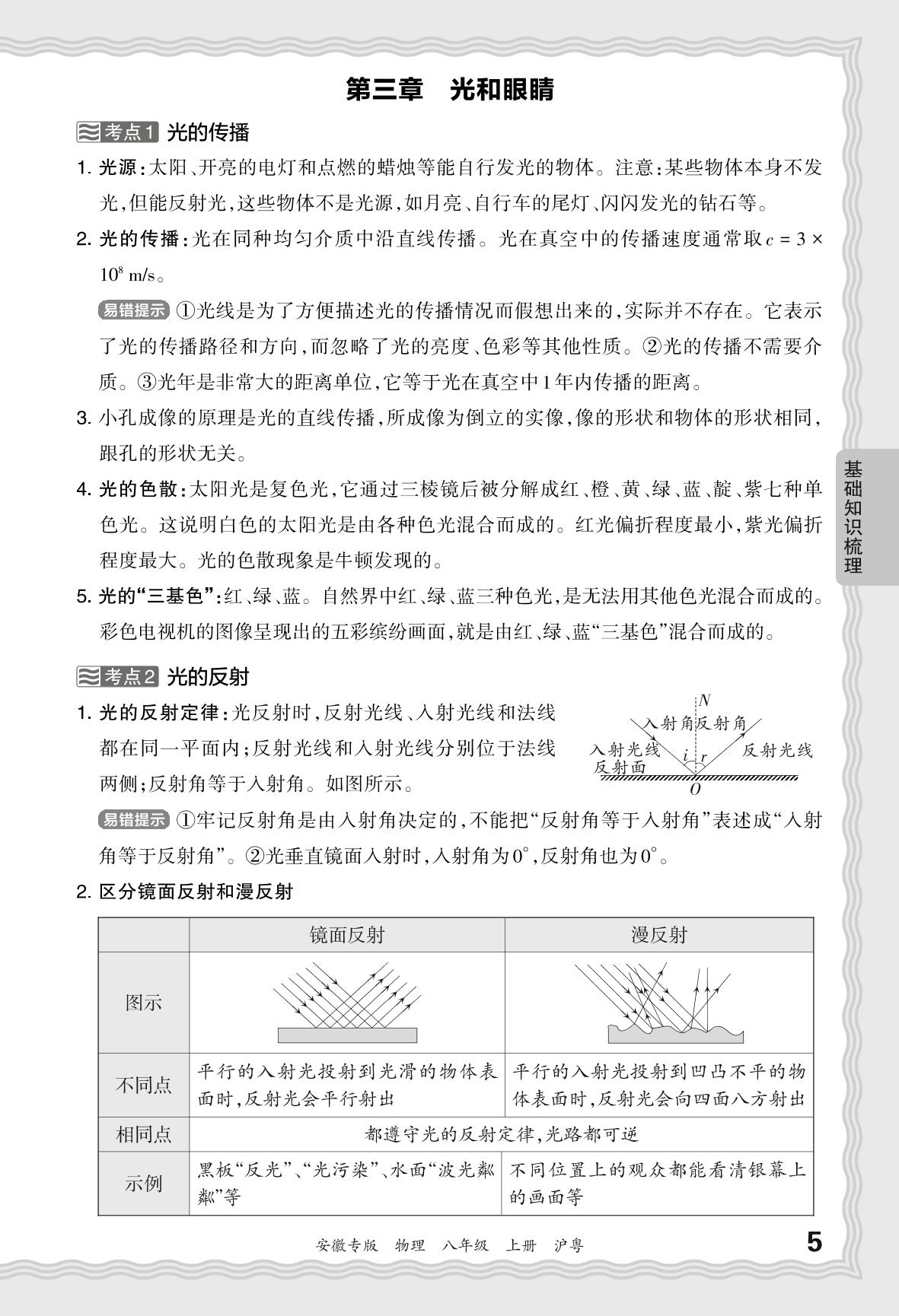 2023秋上册八年级物理沪粤版 期末过课本·基础知识梳理 第三章 光和眼睛